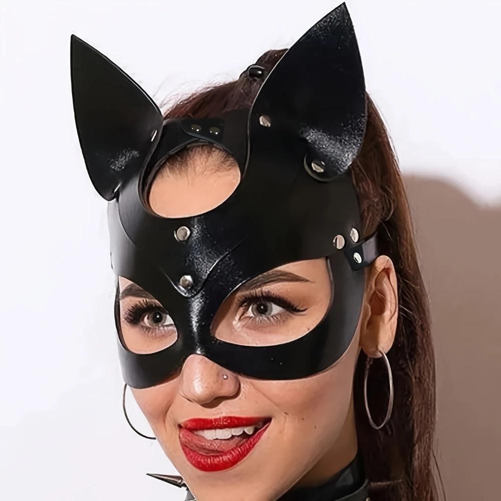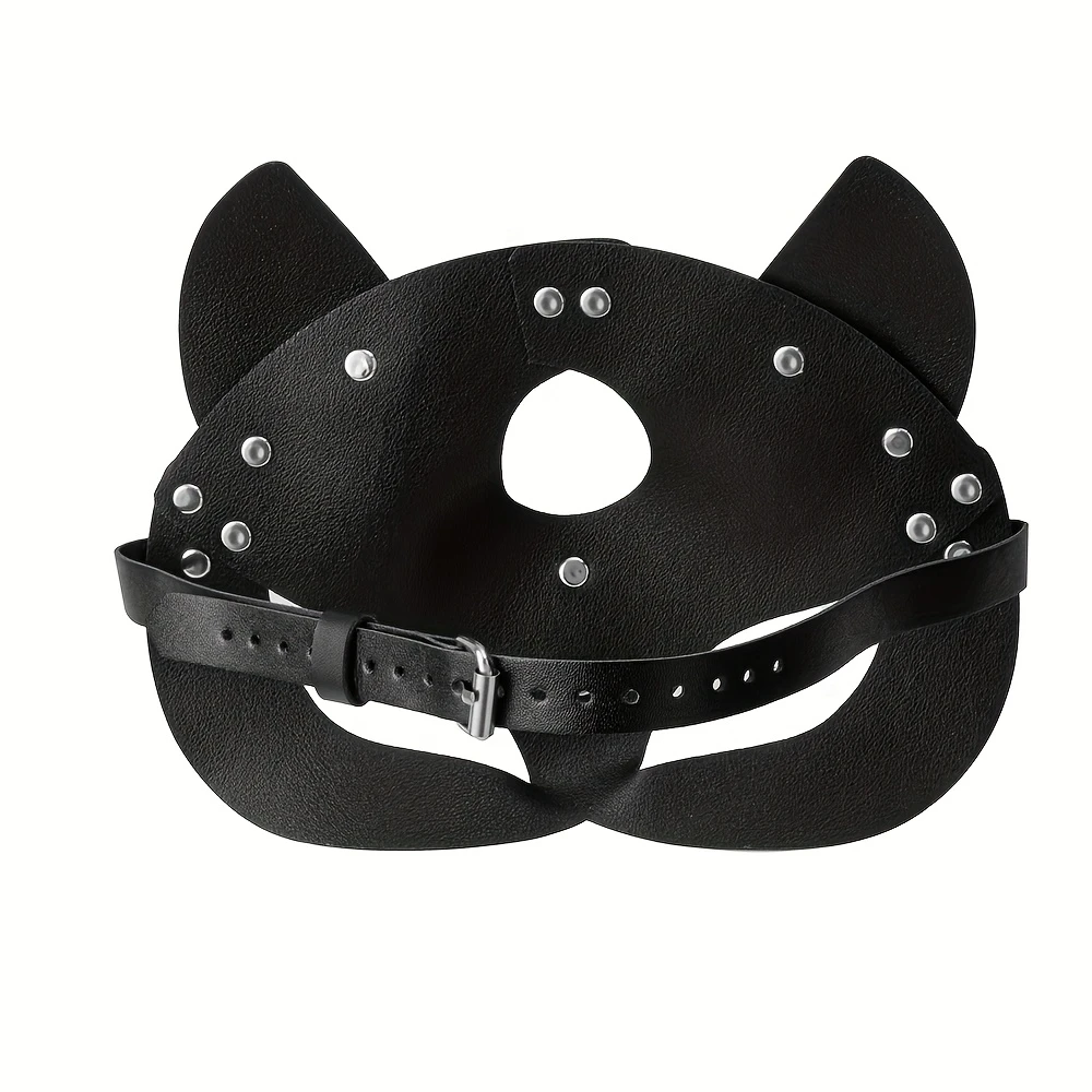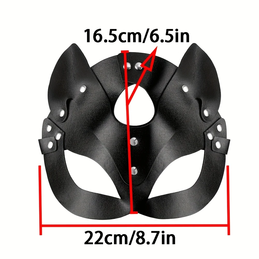 Ekle cesur ve gizemli bir dokunuş bu ile görünüşünüzeBlack synthetic leather cat mask.Featuring ear cutouts and a sleek gothic punk style, bu mask is perfect for halloween, cosplay events, themed parties, raves, or as a unique fashion statement.