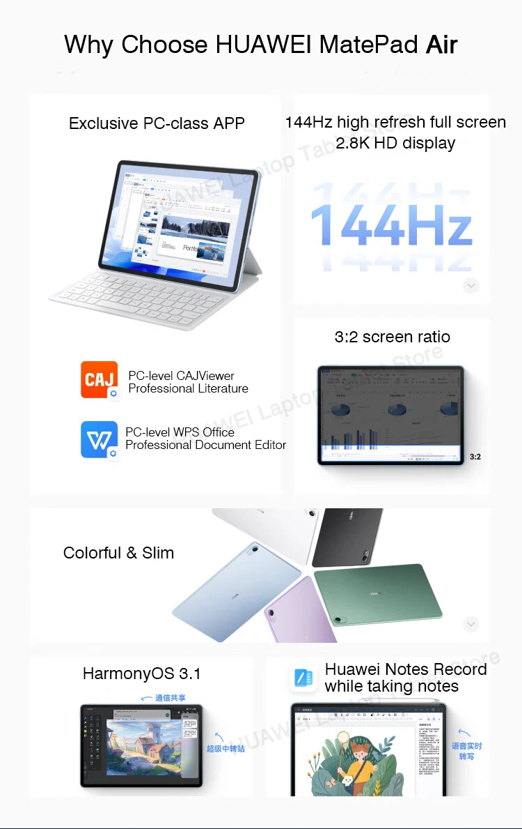 2023 HUAWEI MatePad Air 11.5-inch 144Hz 2.8K Tablet 8GB/12GB 128/256/512GB WiFi CPU Snapdragon888 HarmonyOS 3 8300mAh HDR