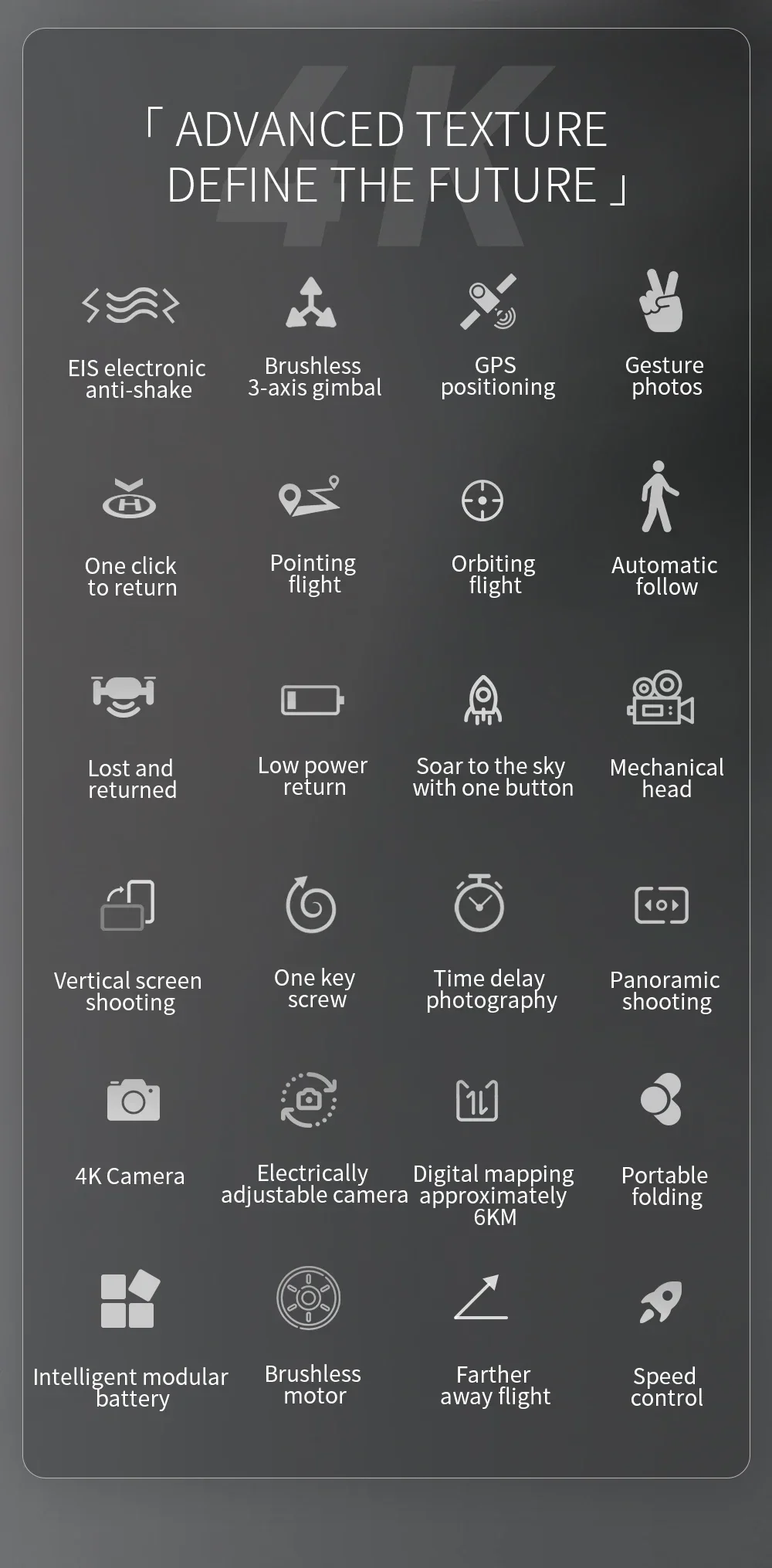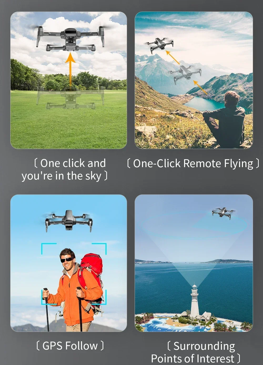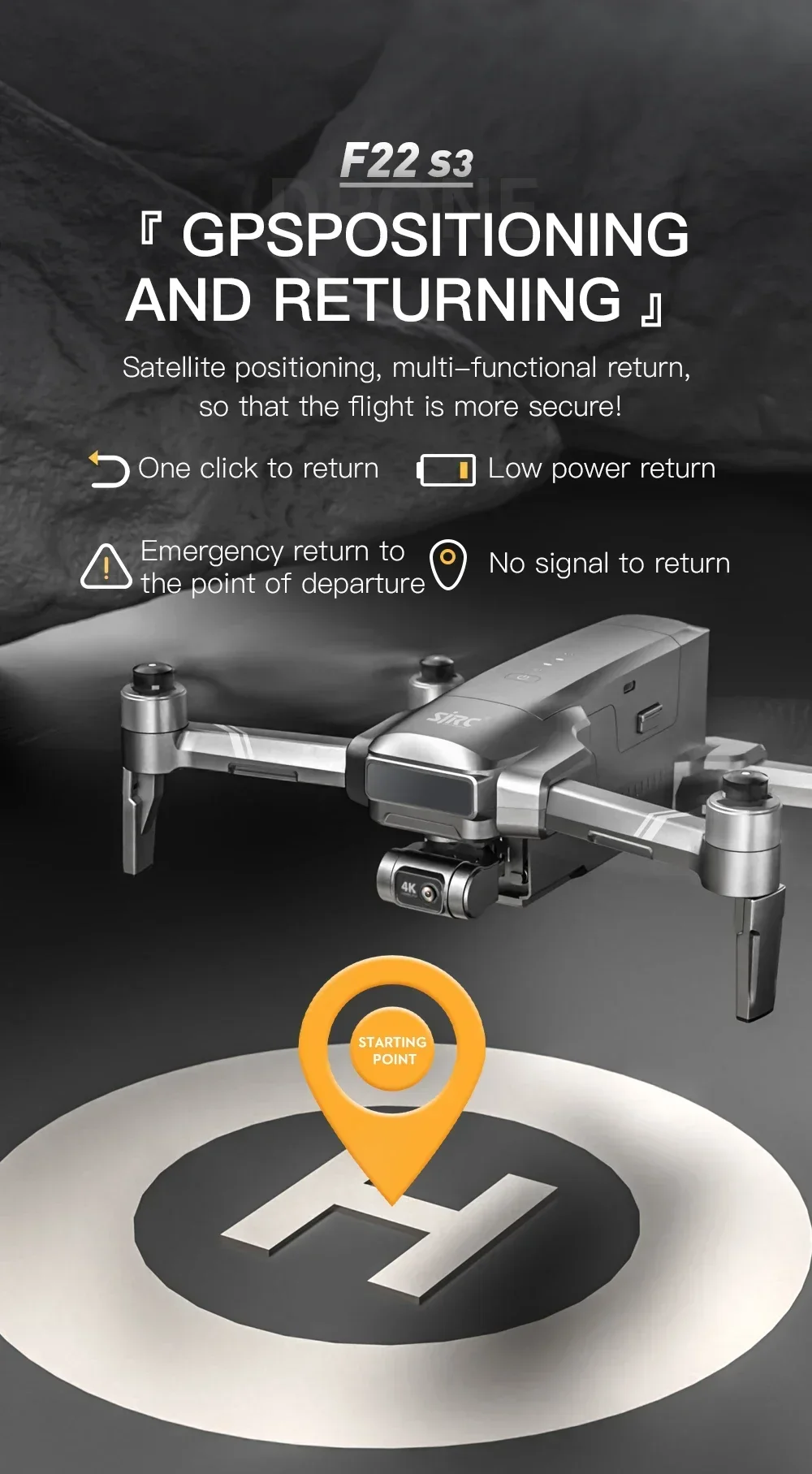 1. GPS one click return to takeoff point, low power return, no signal return.