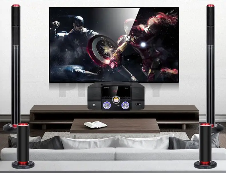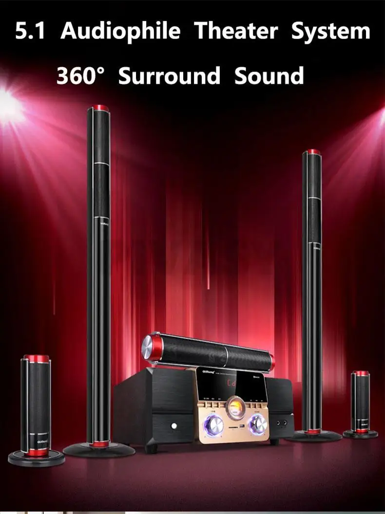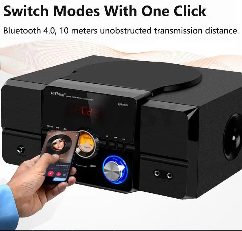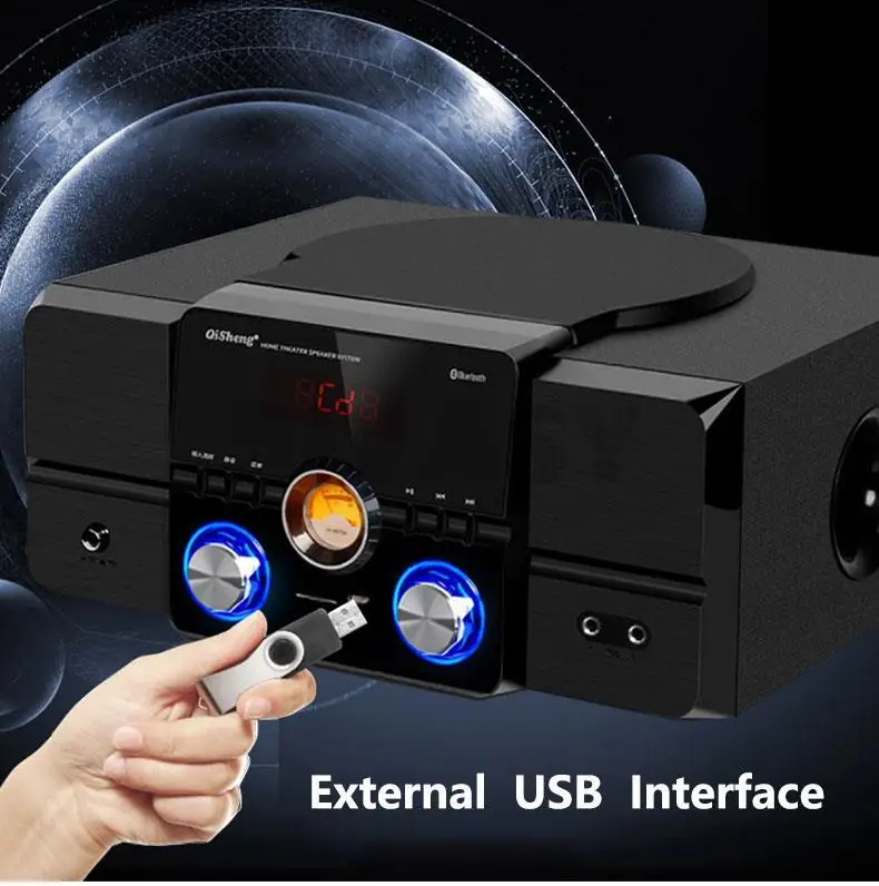 High Power HiFi Fever Bluetooth Subwoofer Three-Way 3 Inch Active Speaker 5.1 Wooden Home PC Theater Audio Set 8Ω Fiber Coaxial