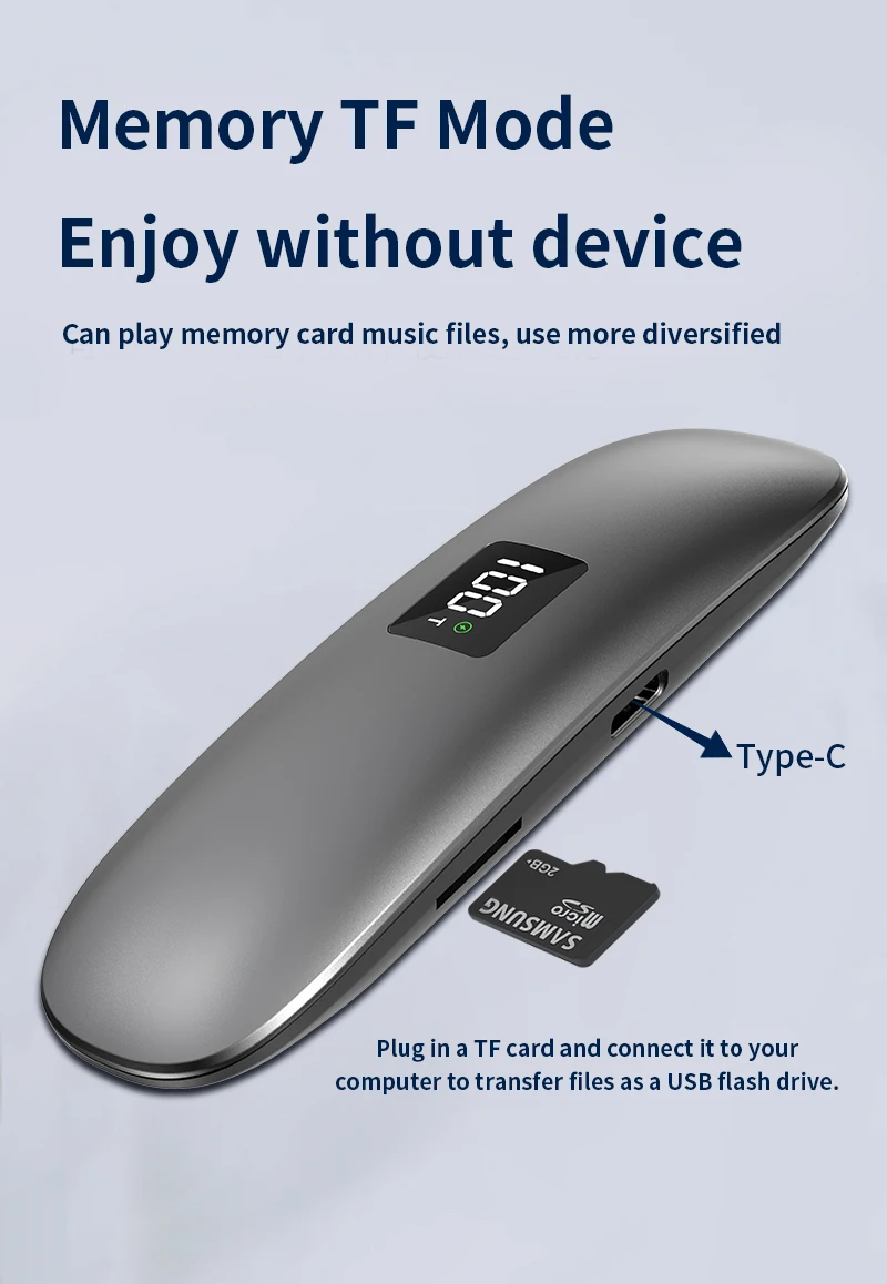 Features: Bluetooth playback, TF card playback, LED display screen, timed shutdown, battery level display.