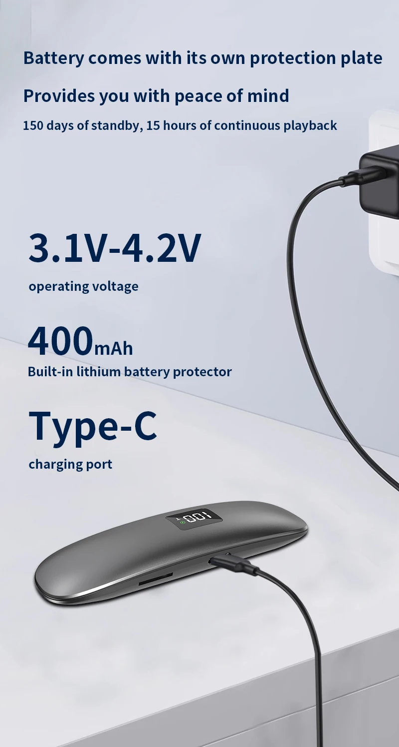 400mah rechargeable battery, the battery comes with a protective plate, standby 150 days, 15 hours of continuous play.