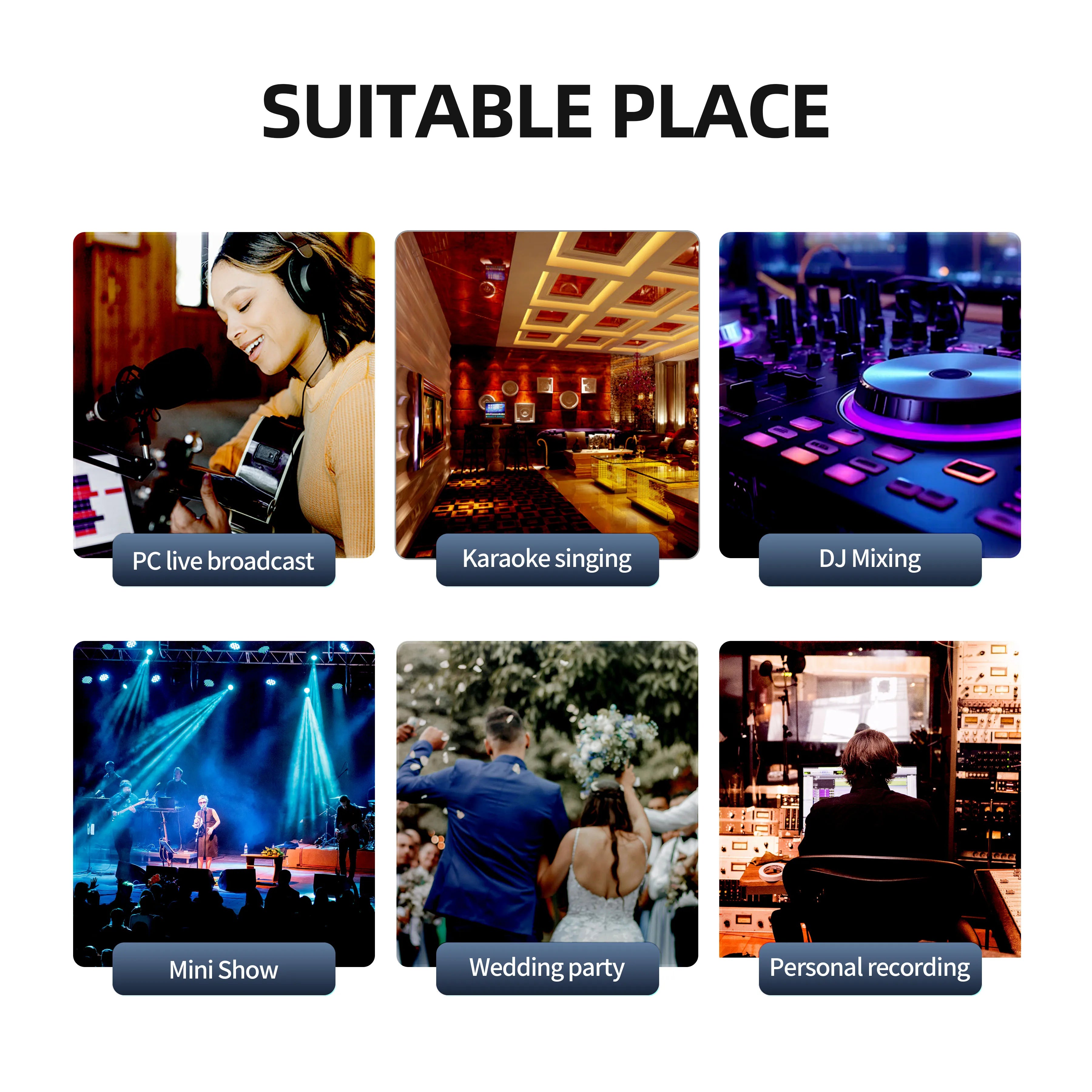 This mixer is a multi-purpose with a sound card 4Channel mixer,Can satisfy the user's family music production,Live webcast,KSong cover and other needs