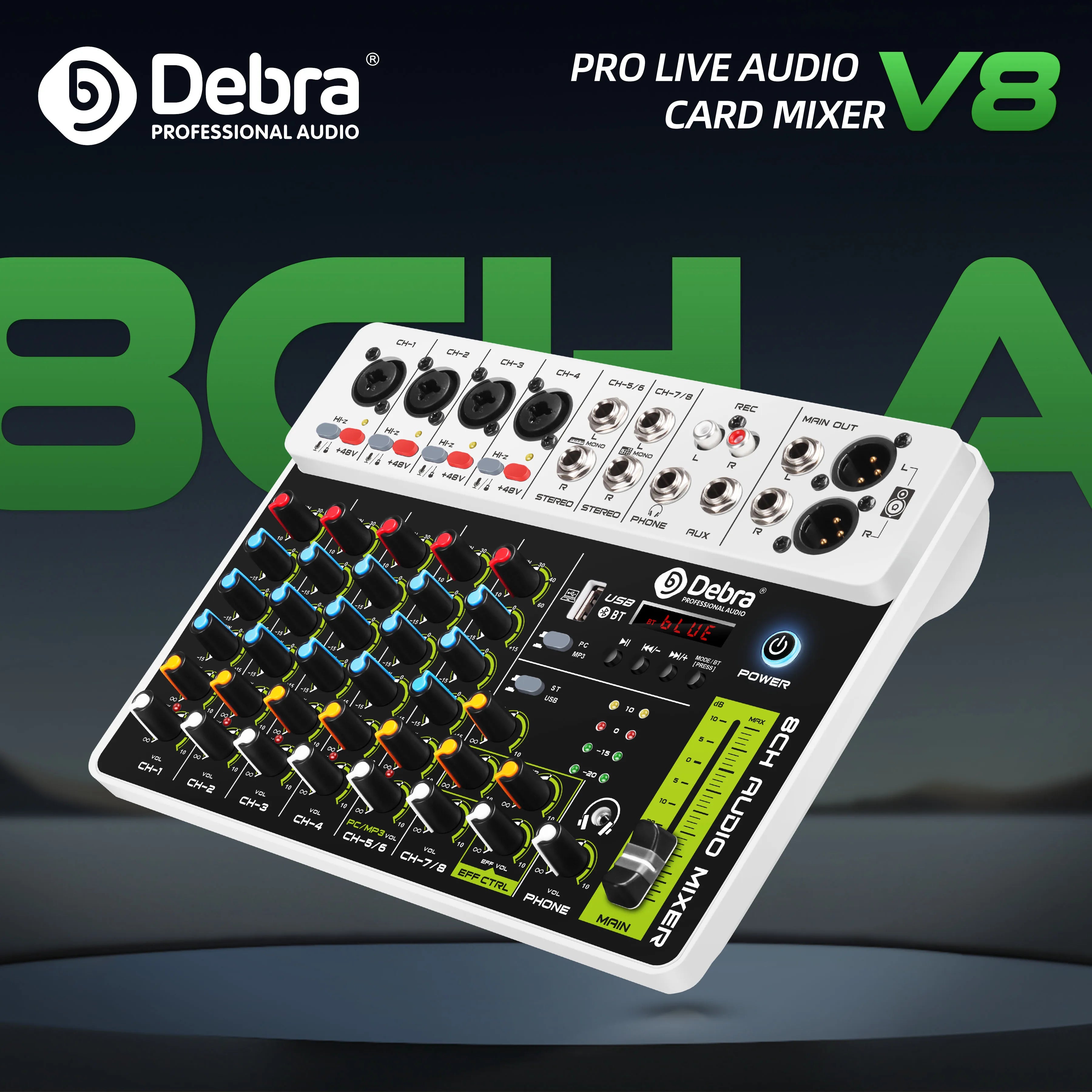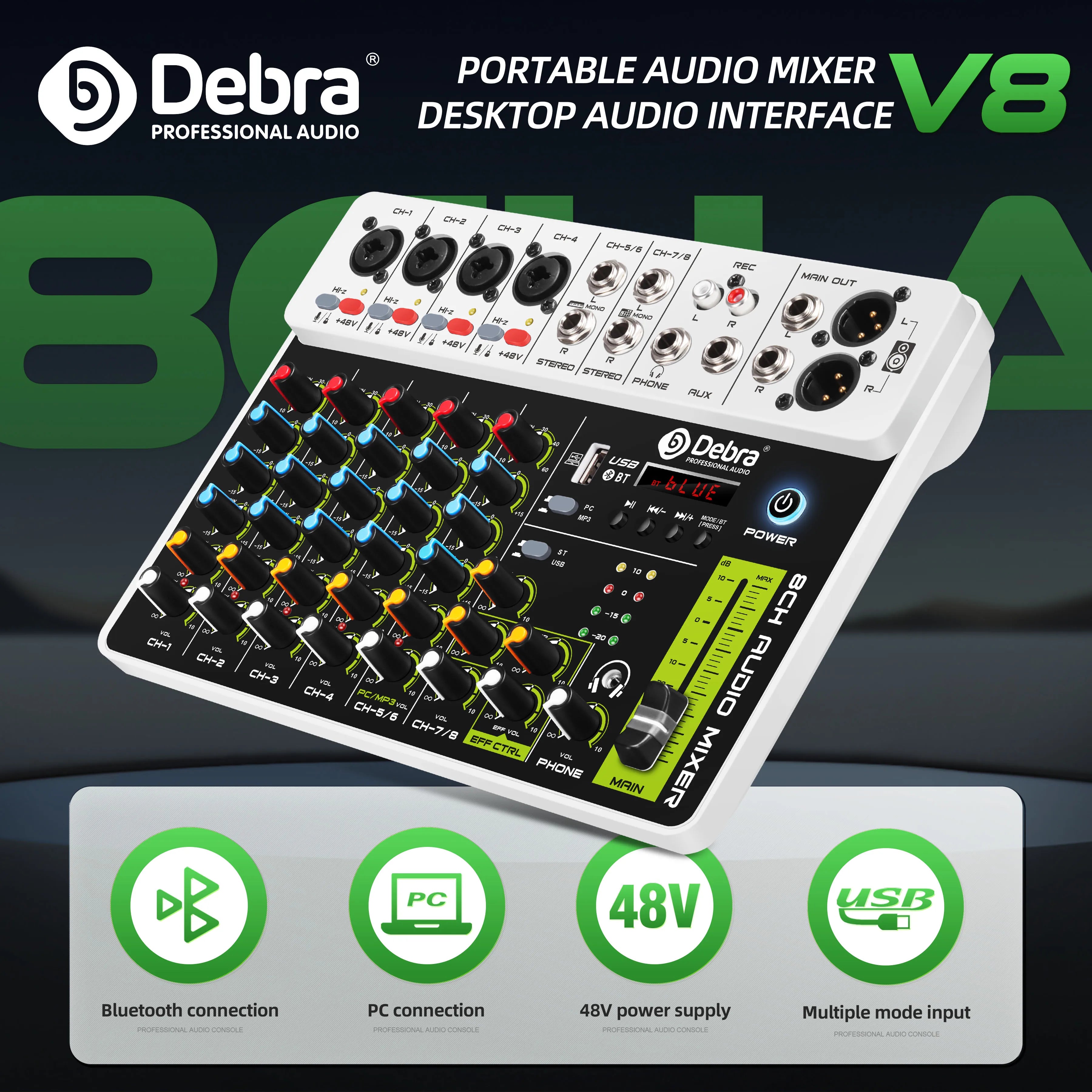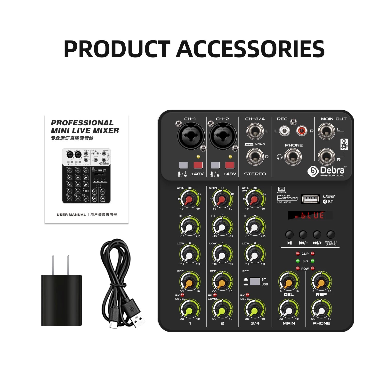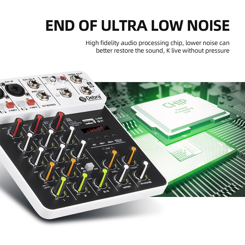 Debra Audio V4 4-Channel Audio Mixer DJ Console with Sound Card, 48V, Bluetooth