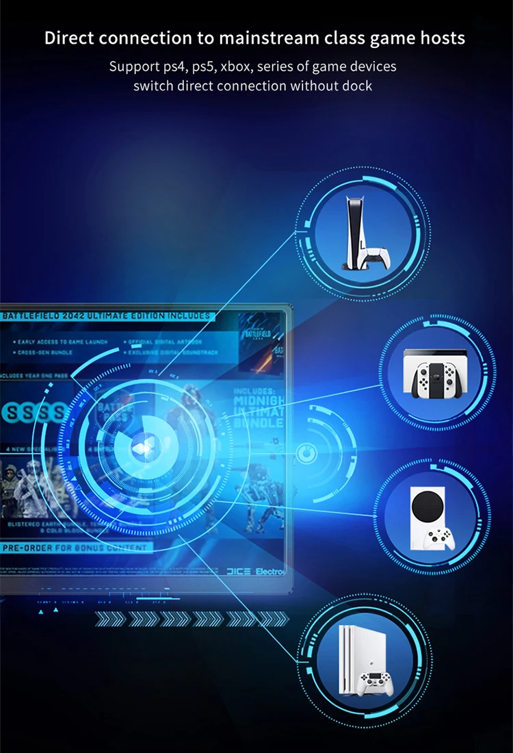10.5 Inch 1280p FHD Portable Gaming Monitor Display High Brightness with HDMI-Compatible Type-C USB for Laptop PC Xbox Switch