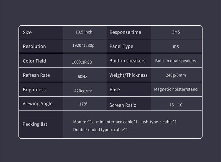 - Item: 10.5 inch 1280p FHD Portable Monitor