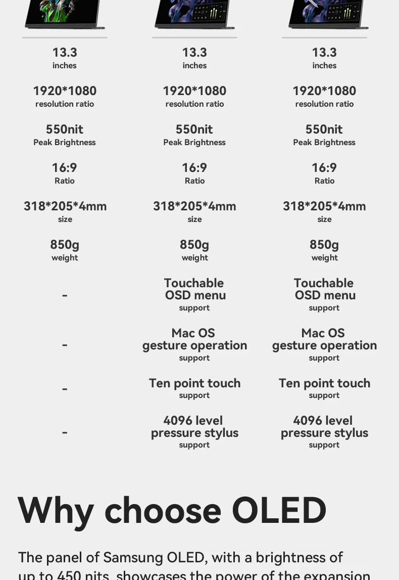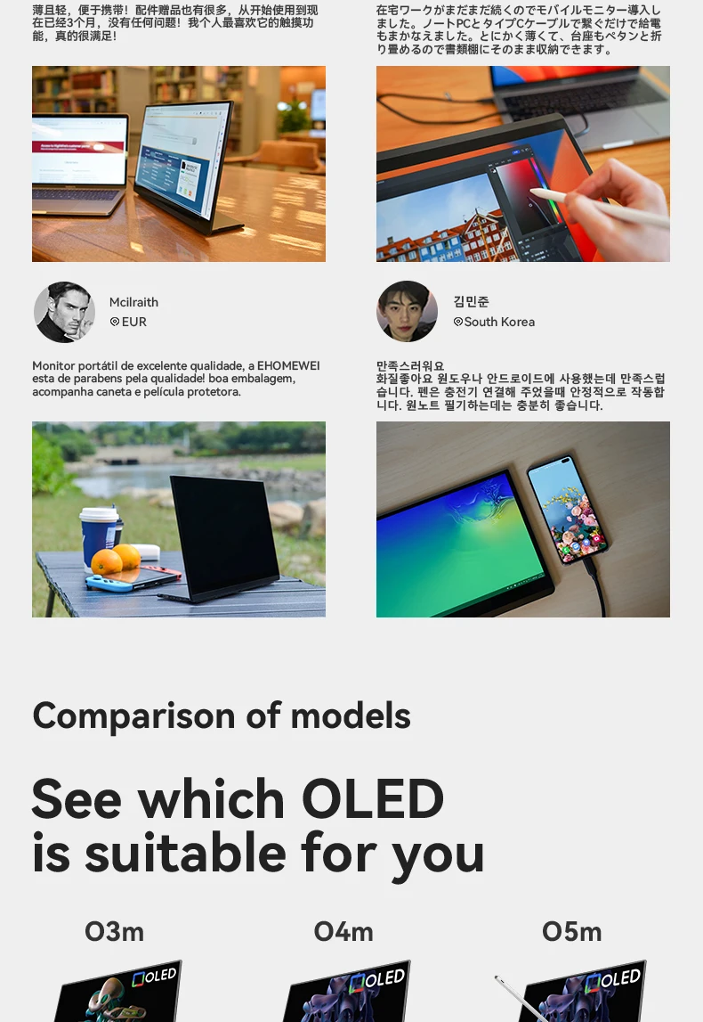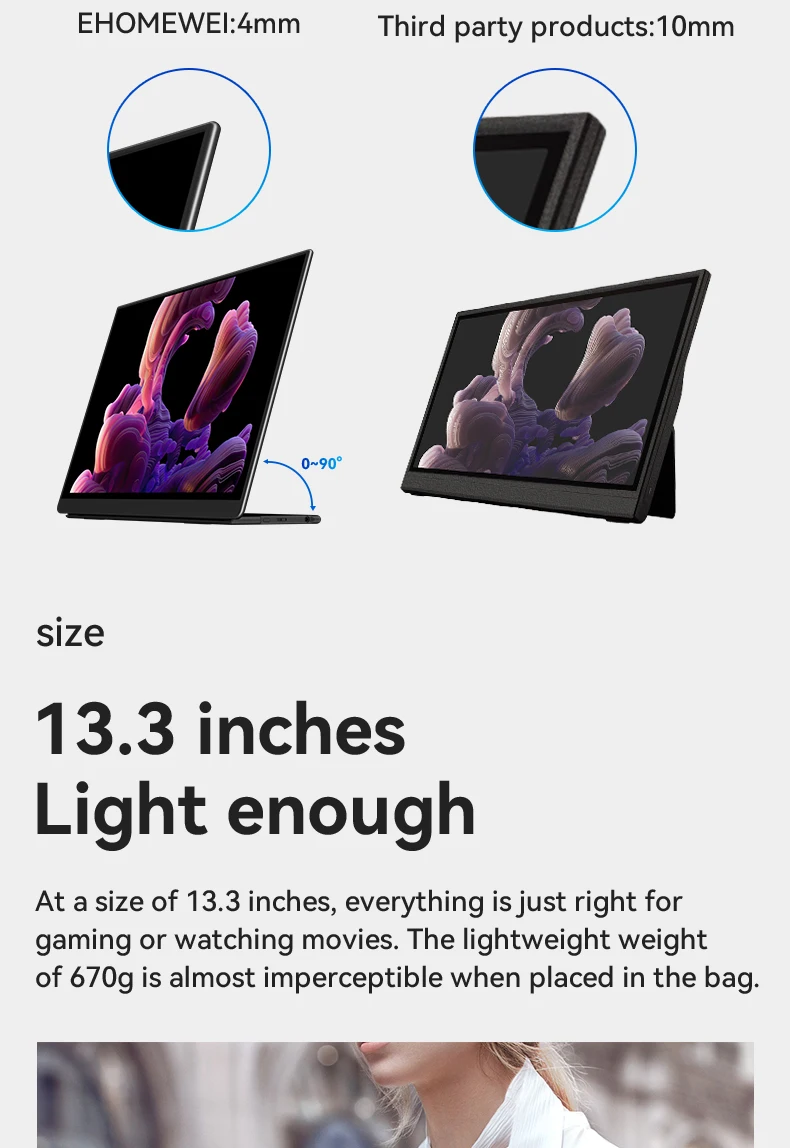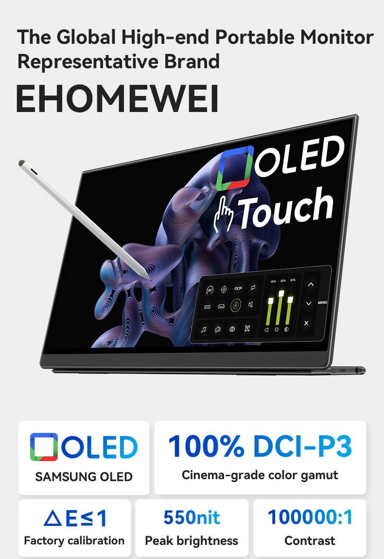 EHOMEWEI OLED Portable Monitor Om Series 13.3" FHD 60HZ 100%DCI-P3 16:9 For Switch Laptop Windows Macbook