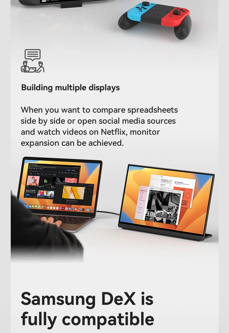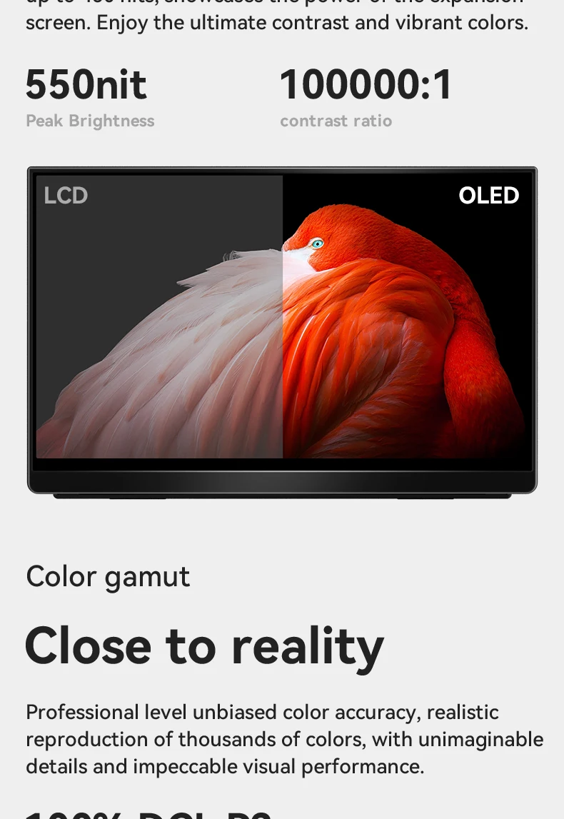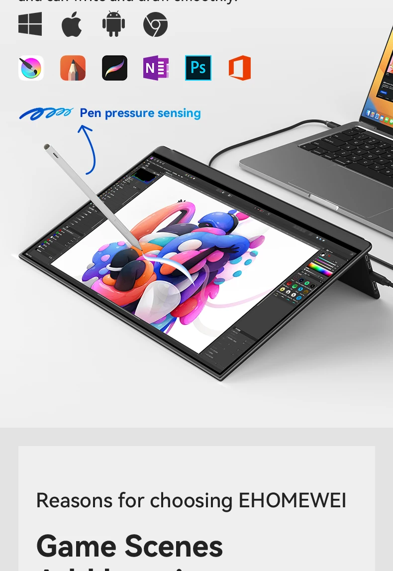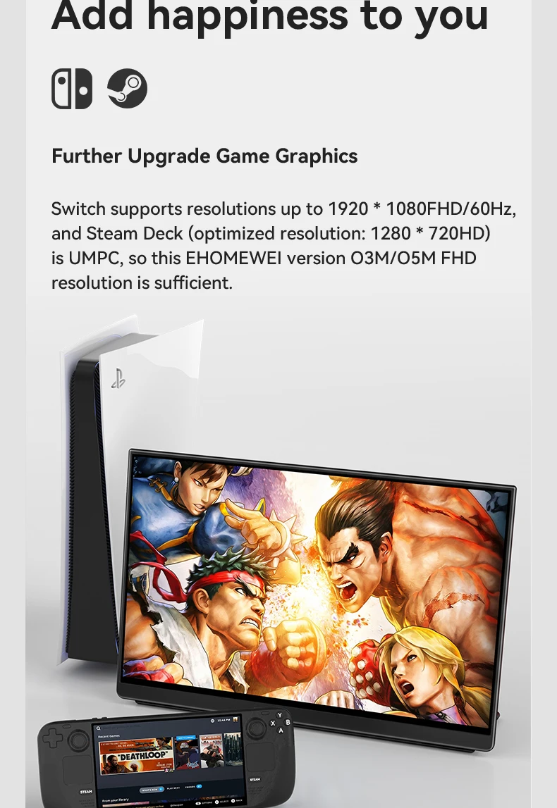 EHOMEWEI OLED Portable Monitor Om Series 13.3" FHD 60HZ 100%DCI-P3 16:9 For Switch Laptop Windows Macbook