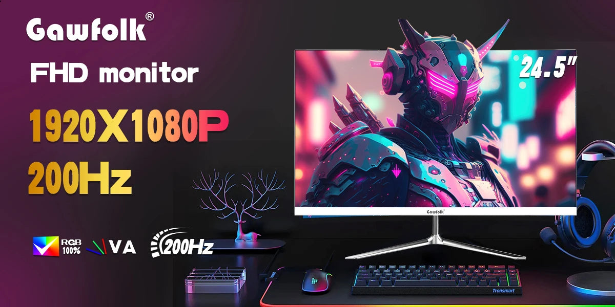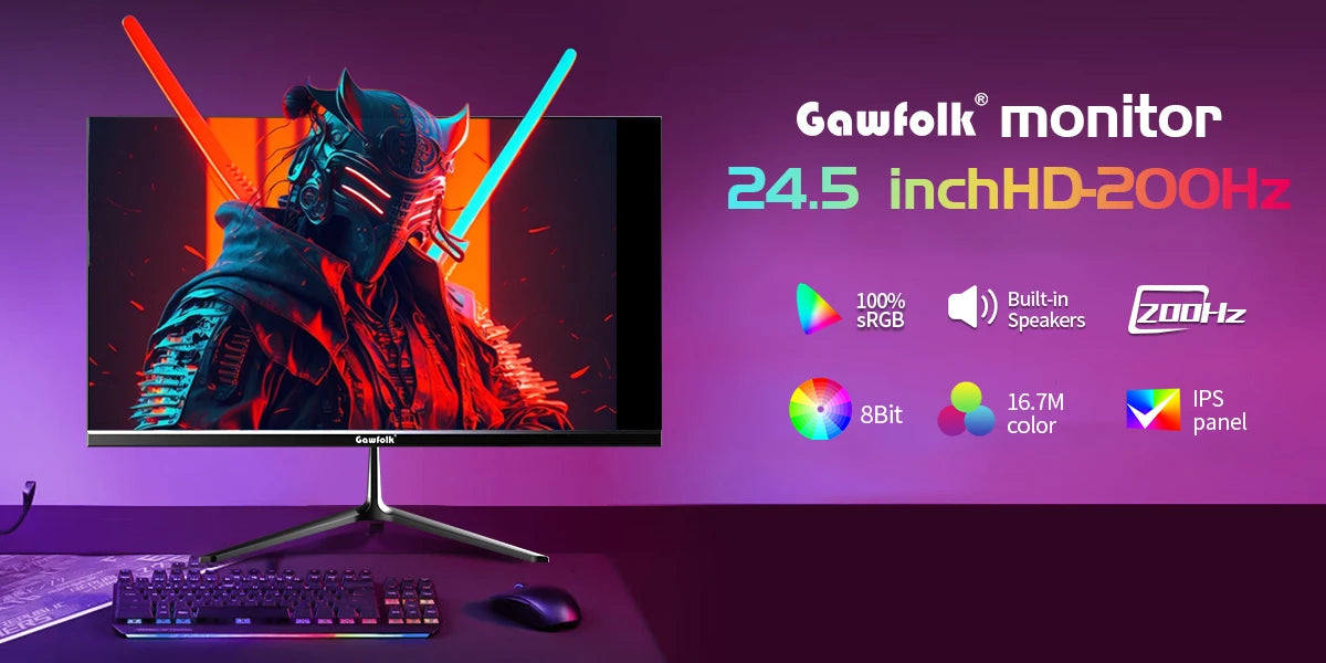 Gawfolk 24.5 Inch Gaming Monitor, 200hz PC Monitor FHD 1080P Frameless Computer Monitors, VA, sRGB 100%, DisplayPort, HDTV, Eye