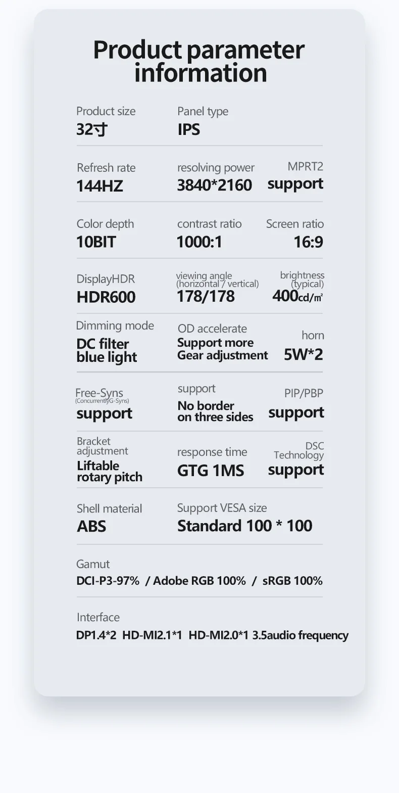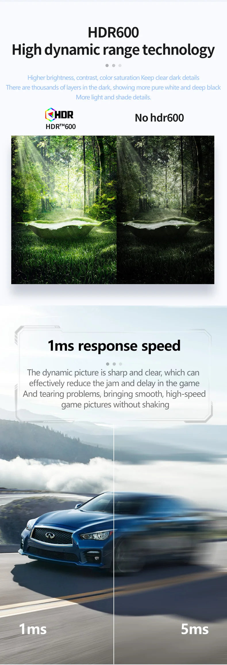 Compatible G-sync&FreeSync/MPRT/Response acceleration/HDR |