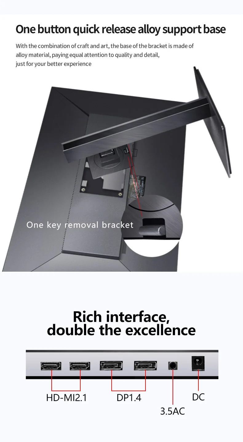 Interface: DP,Type-C*1 ,HD-MI, 3.5mm headphone port