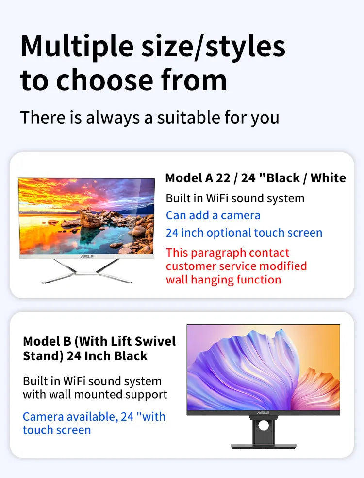 Answer: Of course. We can customize the size of the computer. There are curved and flat screens to choose from, ranging in size from 19.1 - 21.5 - 23.8 - 27 - 32 inches.