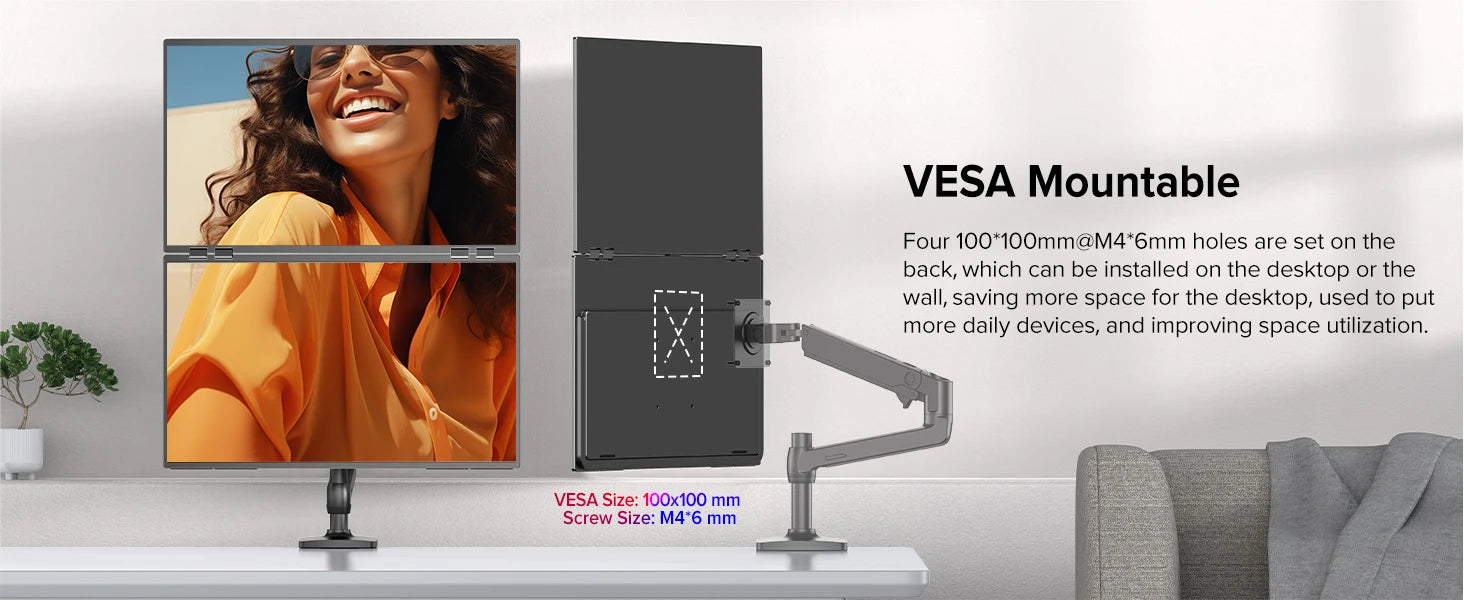 UPERFECT Delta 23.8" 100Hz Dual Portable Monitor 1080P Stacked Displays USB-C HDMI Triple Laptop Screen Extender for Laptop PC