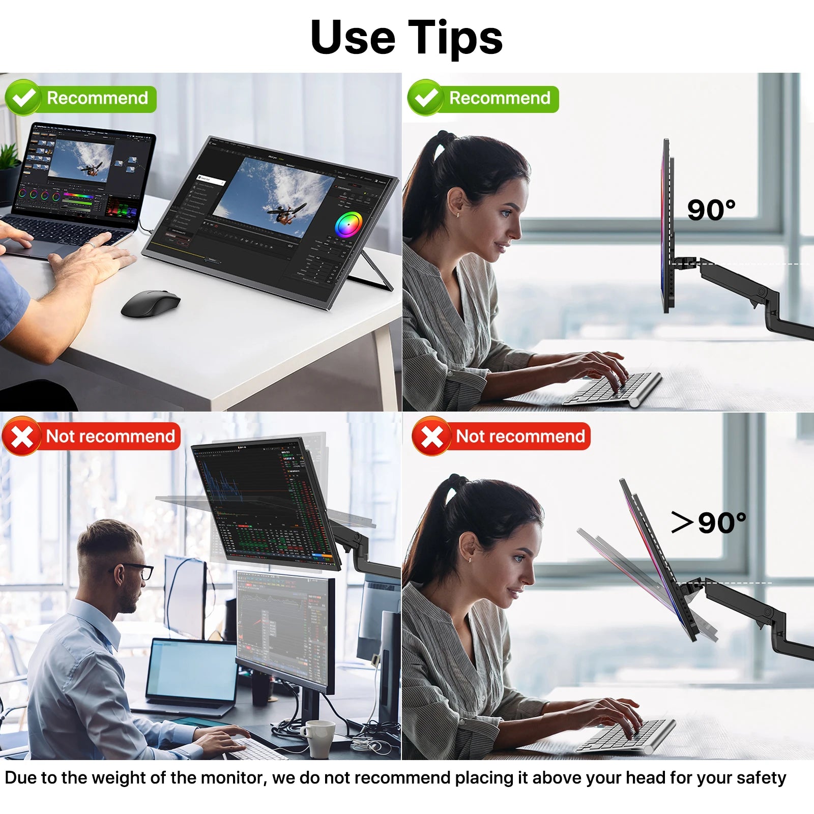 Large Screen & Eye-Friendly: The UPERFECT 18" portable gaming monitor offers a spacious display for enhanced productivity, multitasking, and comfort. Its blue light filter and flicker-free design reduce eye strain, making it ideal for extended use.
