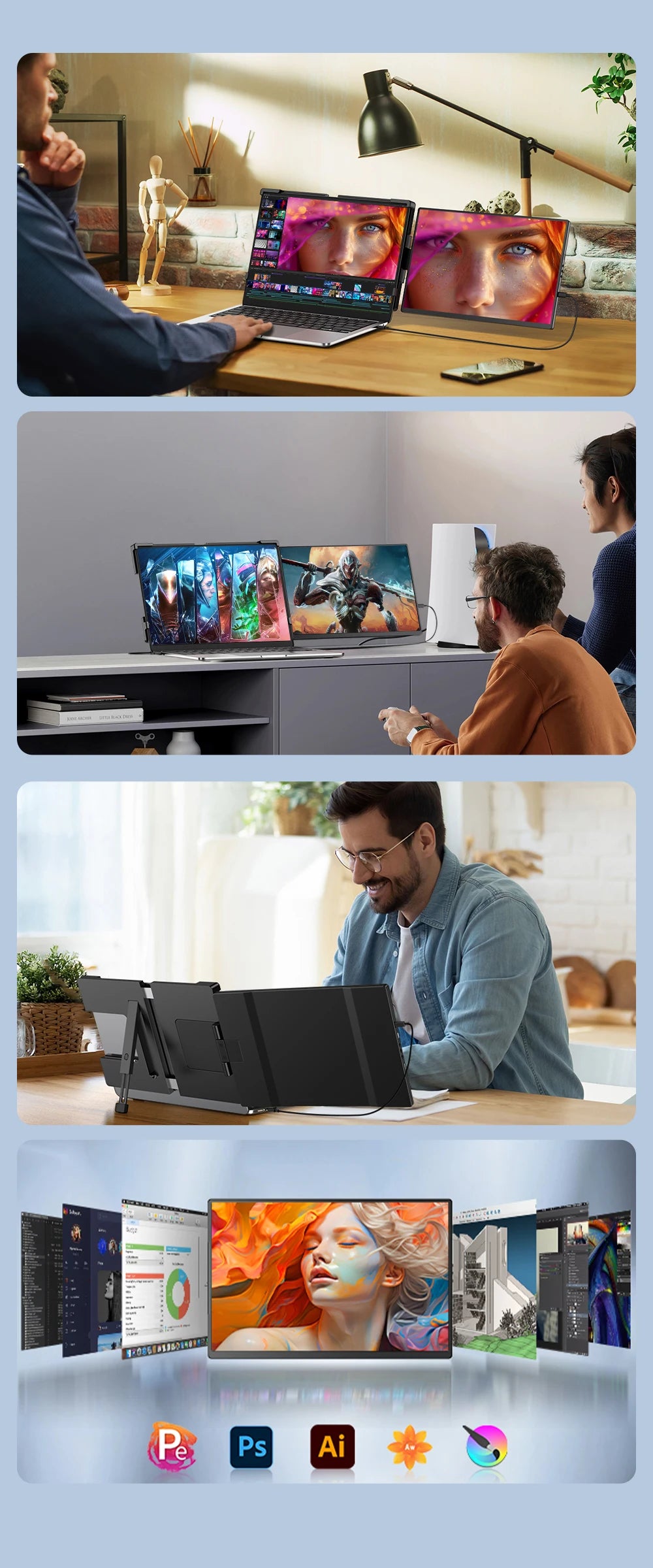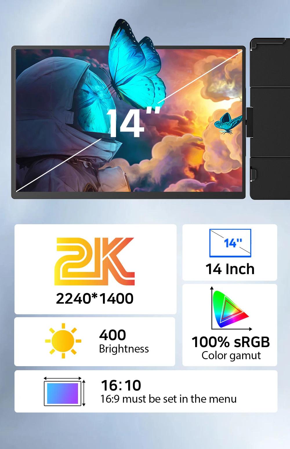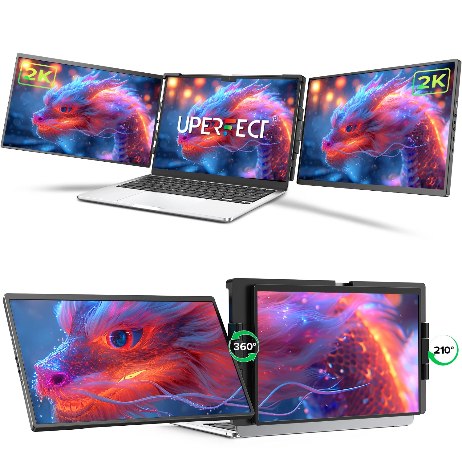 Ustaion Z Laptop Screen Extender 14" Portable Triple Monitor With QHD 2K IPS Display For Mac Windows Chrome PC Fits 13-17inch