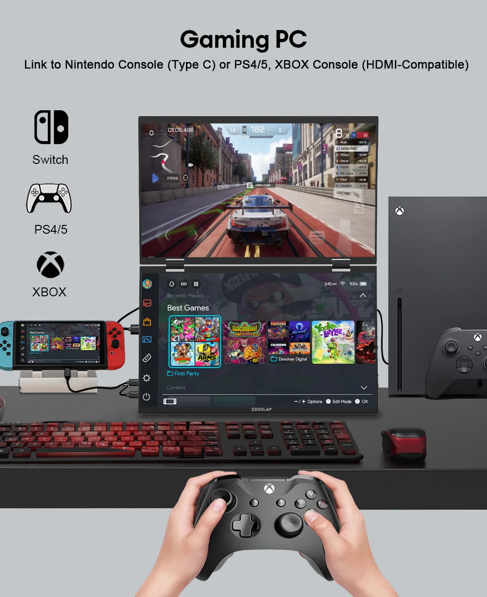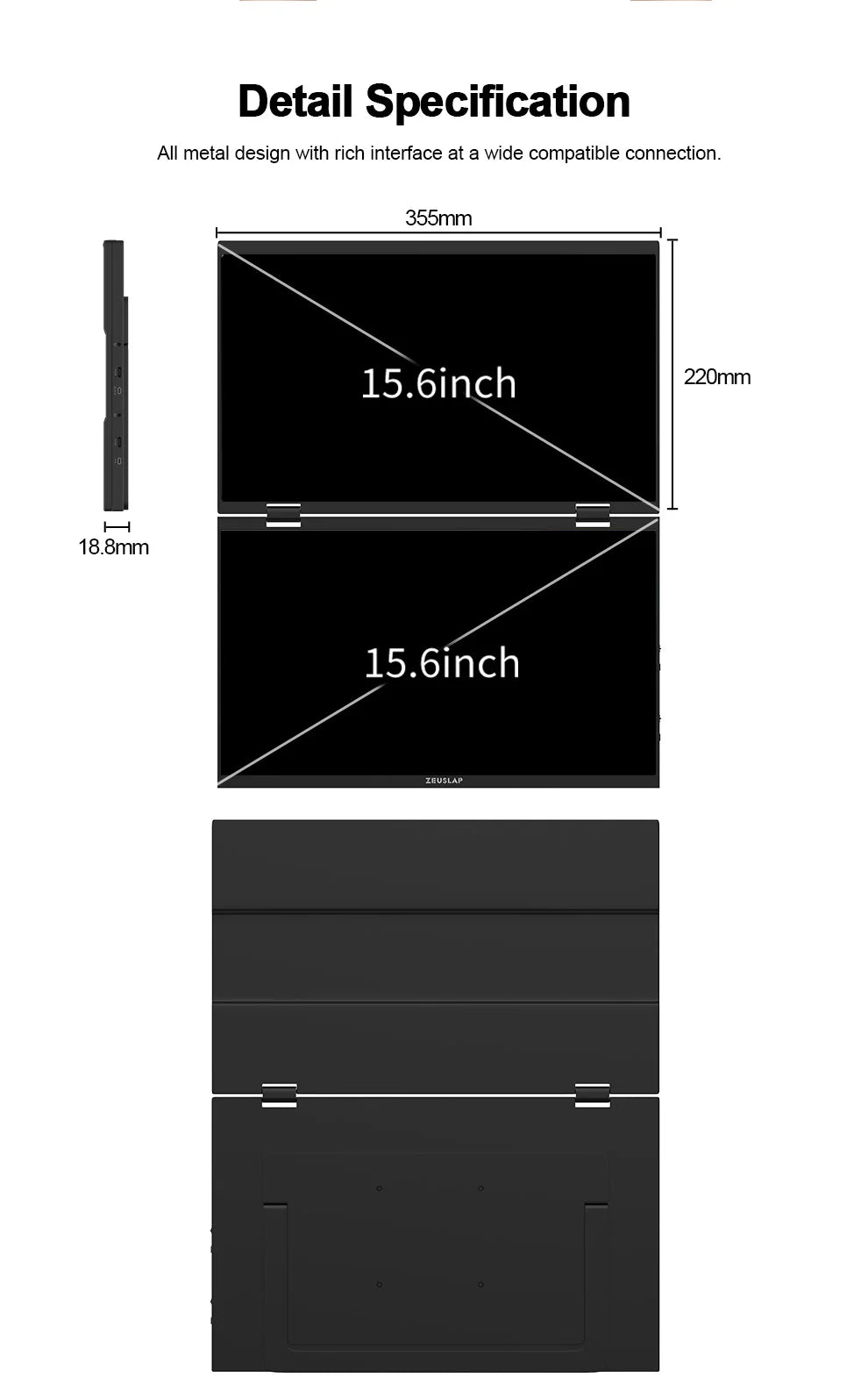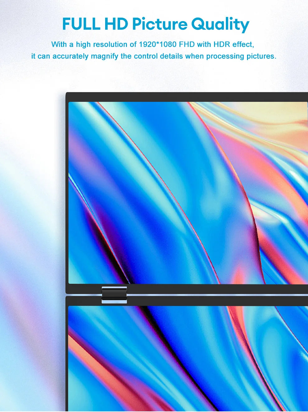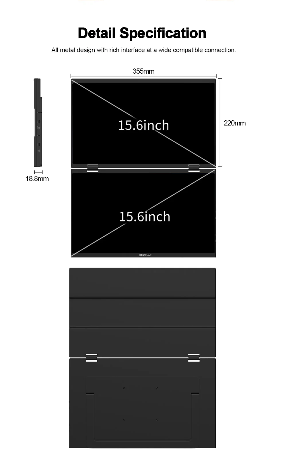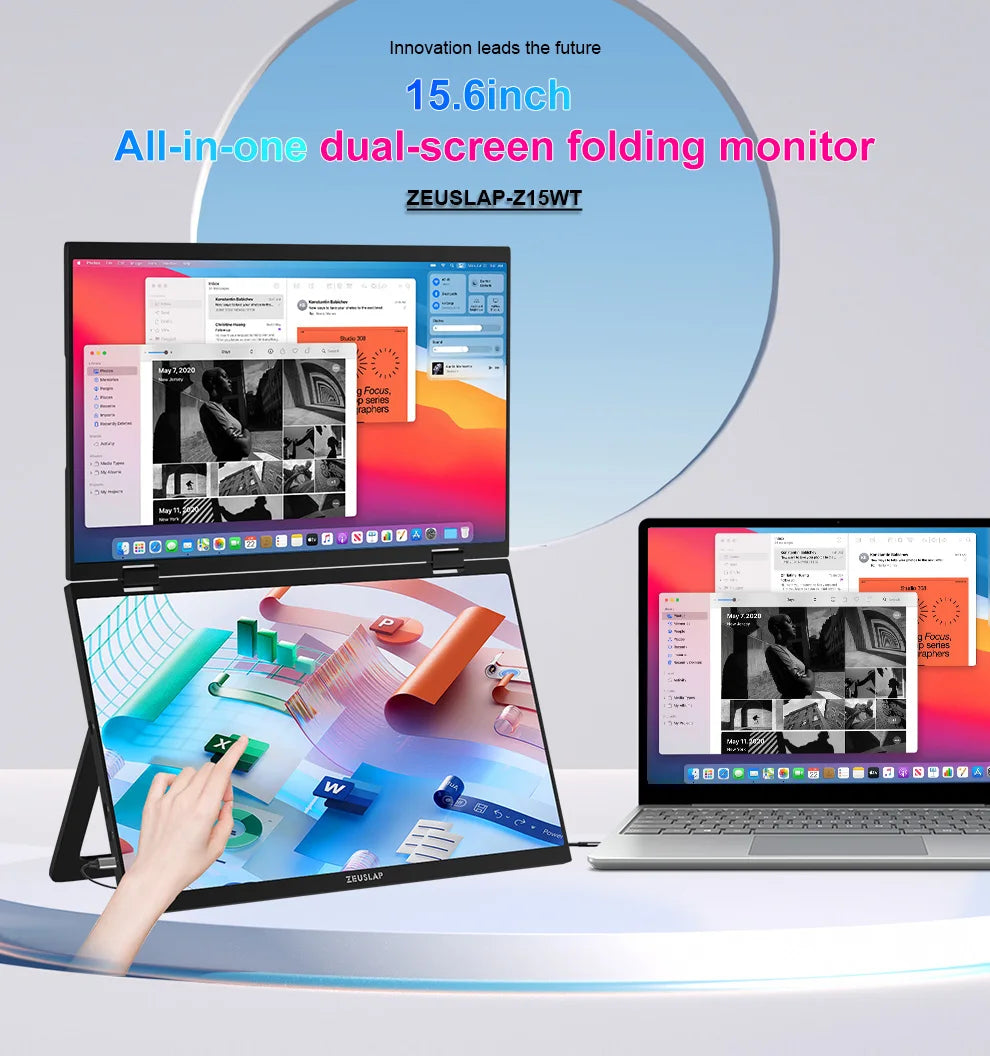 ZEUSLAP 15.6" Dual Touching Stacked Foldable Triple Monitor, Laptop Screen Extender Portable Monitor for Windows Mac OS