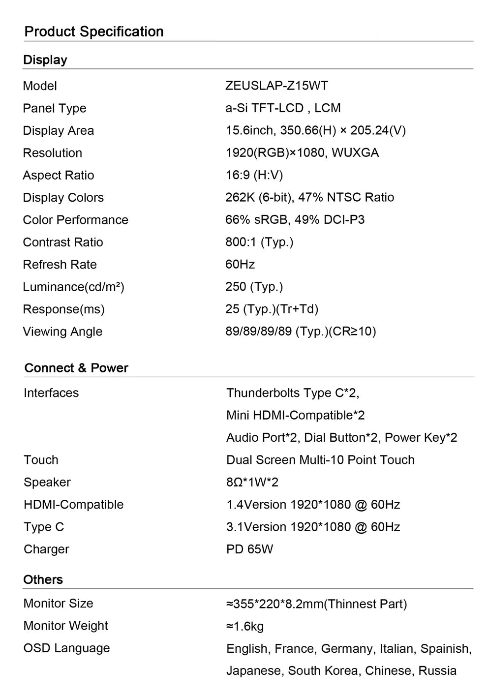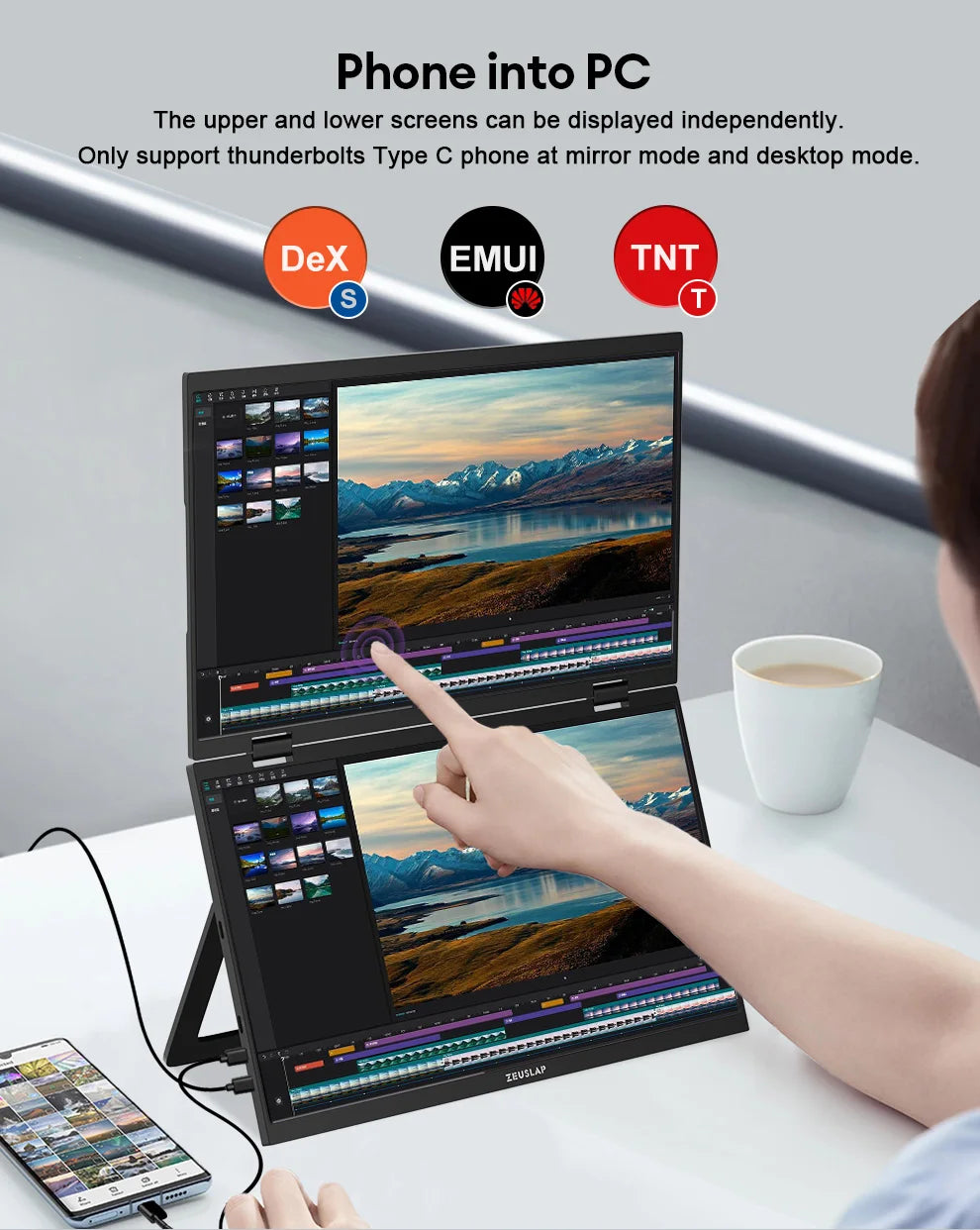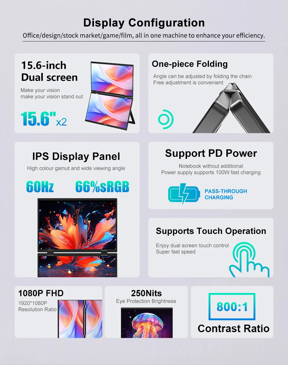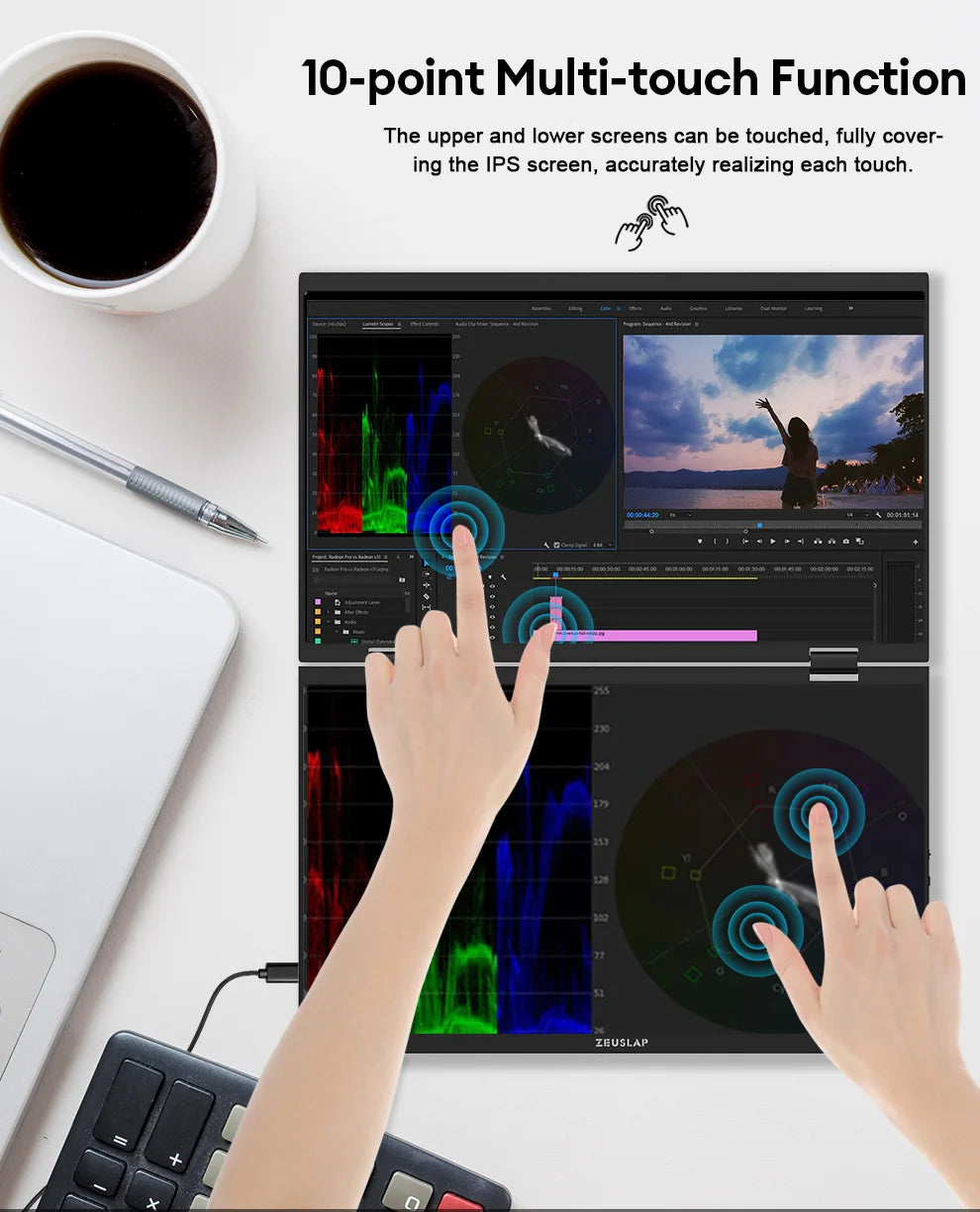 ZEUSLAP 15.6" Dual Touching Stacked Foldable Triple Monitor, Laptop Screen Extender Portable Monitor for Windows Mac OS