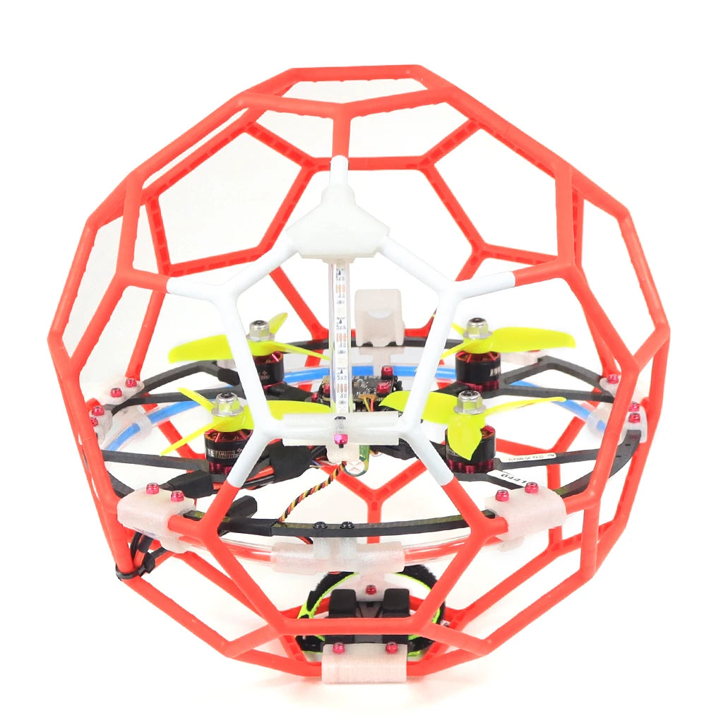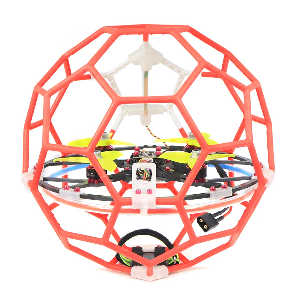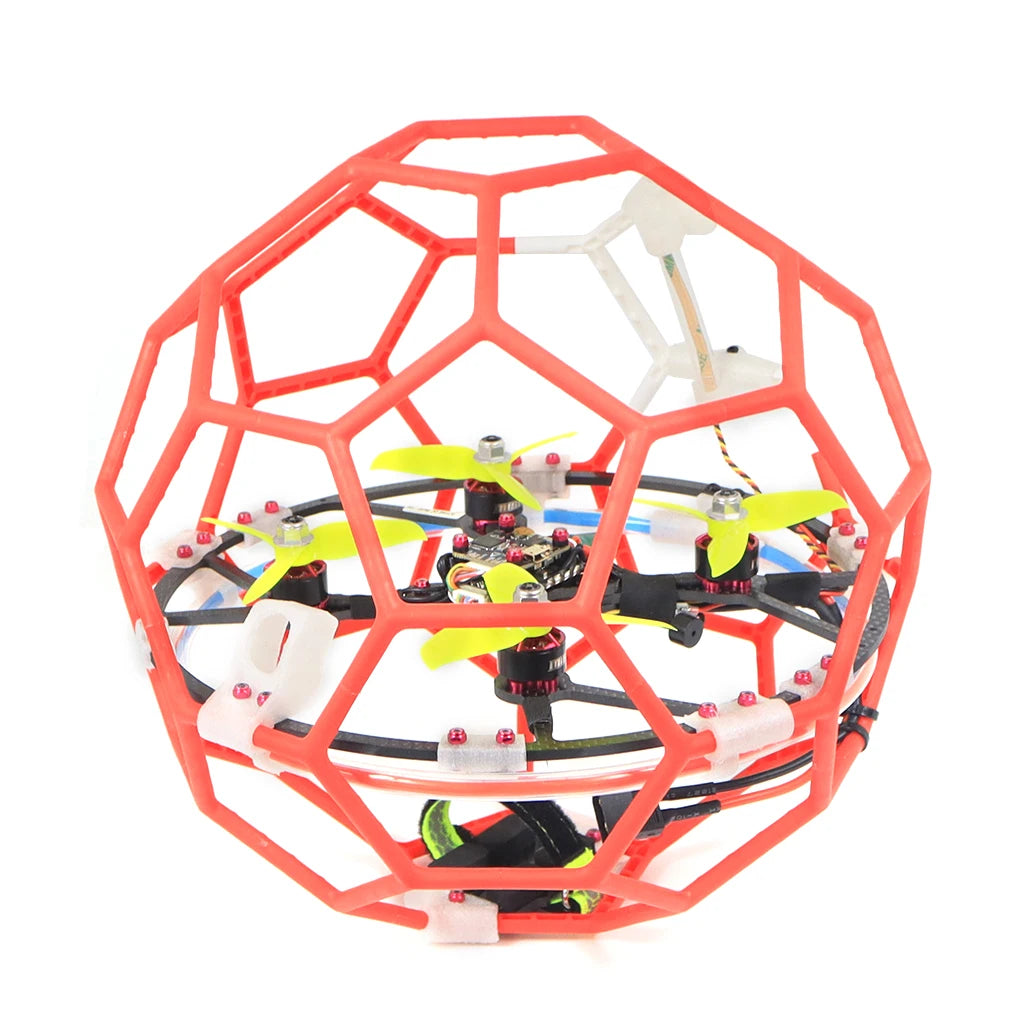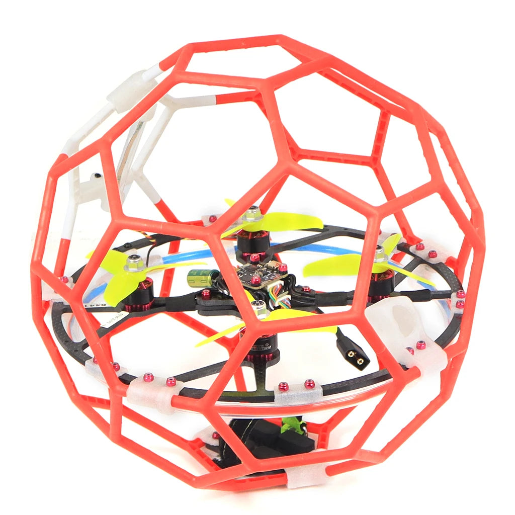 LDARC Flyball 230 Soccer Droneis a quadcopter in the shape of a soccer ball. Itfeatures a 230mm diameter protective frame which is made of high density and flexible material, making it very bouncy when hitting hard surface, e.g. buildings, trees.