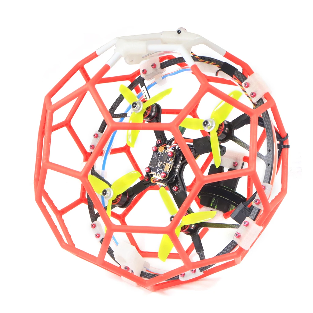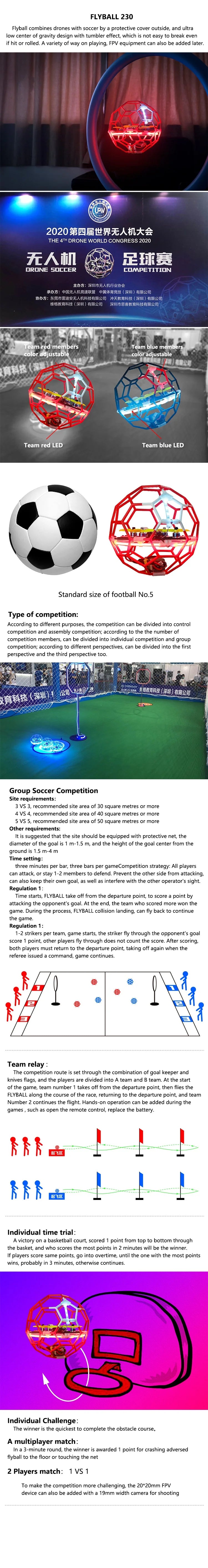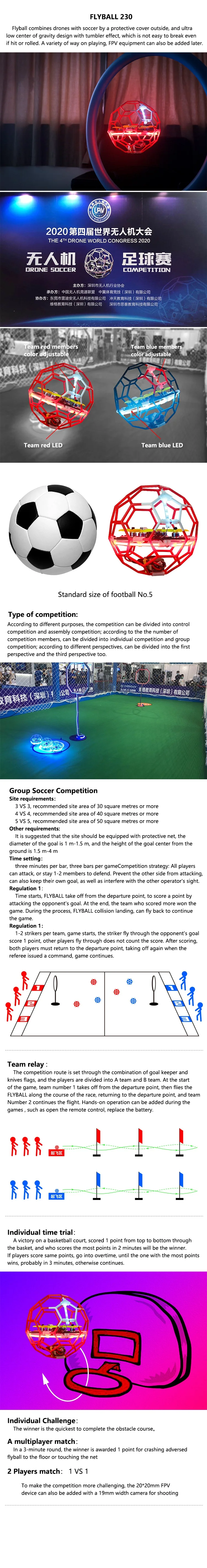 LDARC Flyball 230 Soccer Droneis a quadcopter in the shape of a soccer ball. Itfeatures a 230mm diameter protective frame which is made of high density and flexible material, making it very bouncy when hitting hard surface, e.g. buildings, trees.