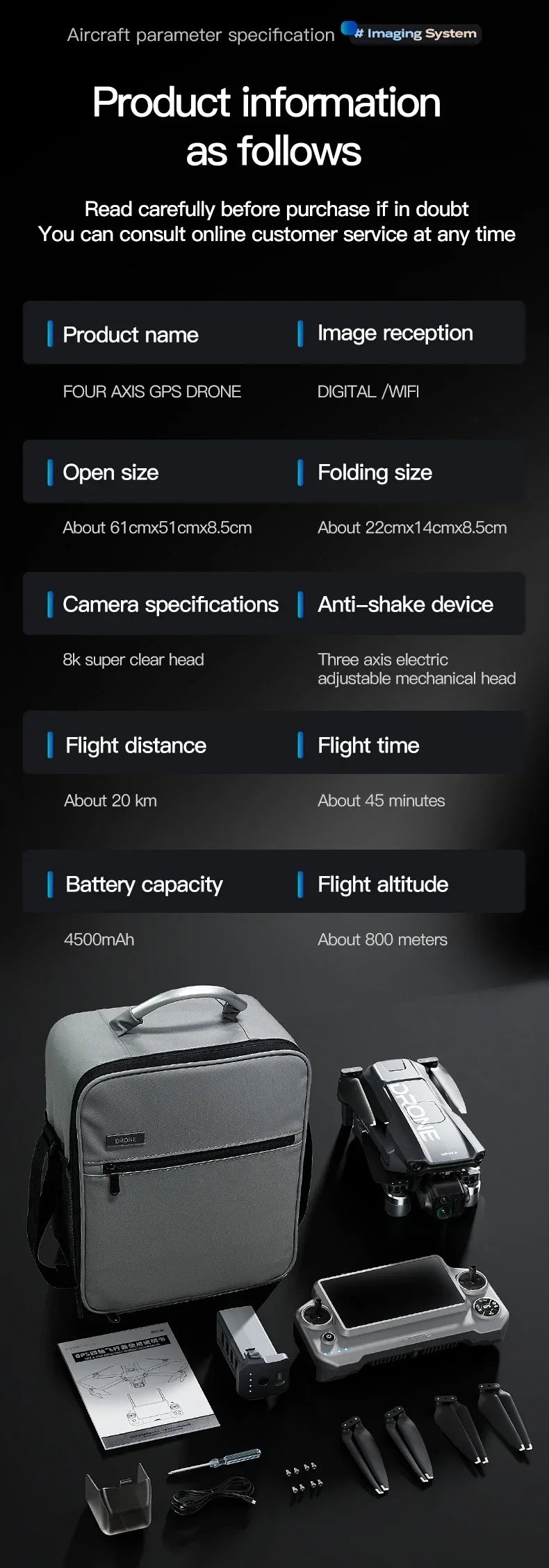 Wifi Image Transmission Distance :6000m(Outdoor and unobstructed,depend on conditions and mobile device)
