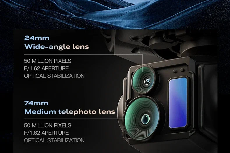 Three axis mechanical stabilization gimbal+electronic stabilization and anti shake+laser obstacle avoidance