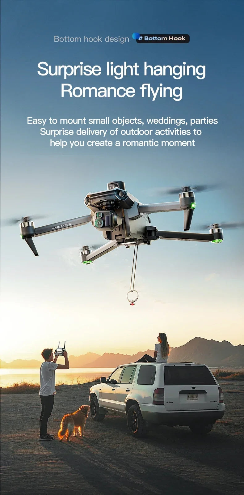 4K high-definition lens, video recording capability (4K 30 frames) with 3x zoom, aircraft retrieval