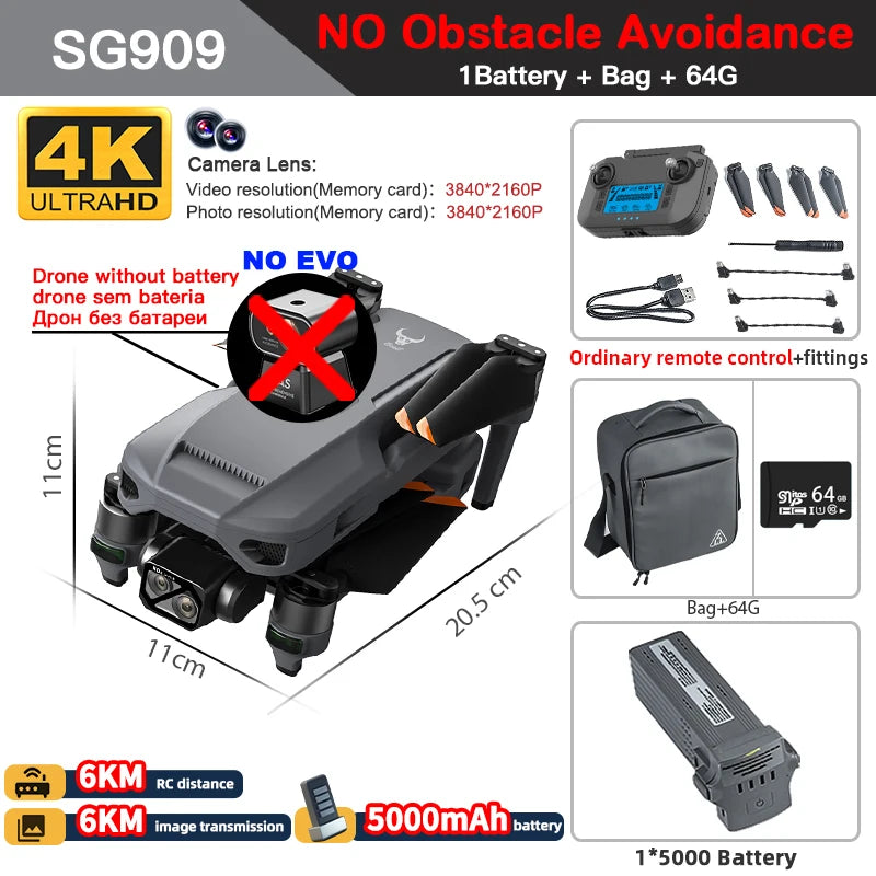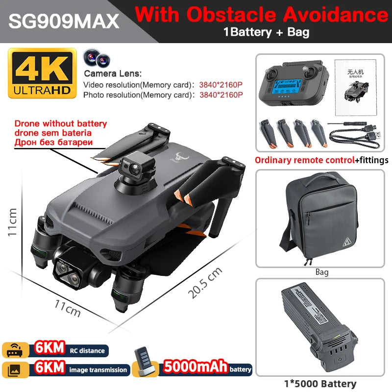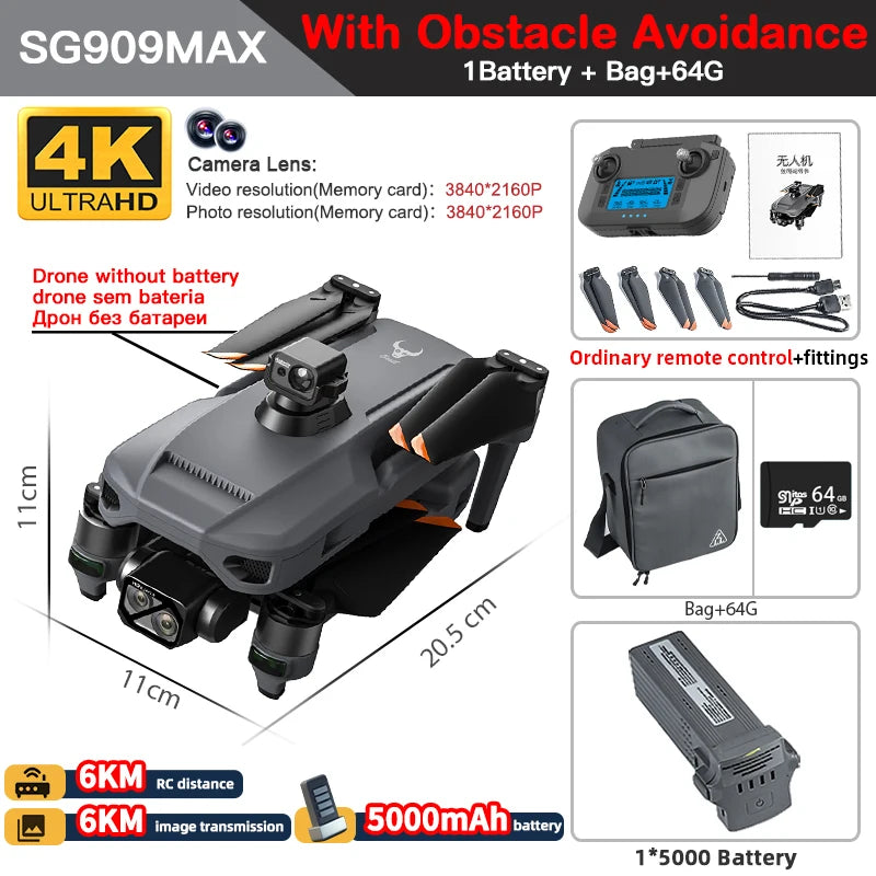SG909MAX has obstacle avoidance sensor, it also has 2 versions, one version will come with Touch Screen remote, another version will come with ordinary remote.