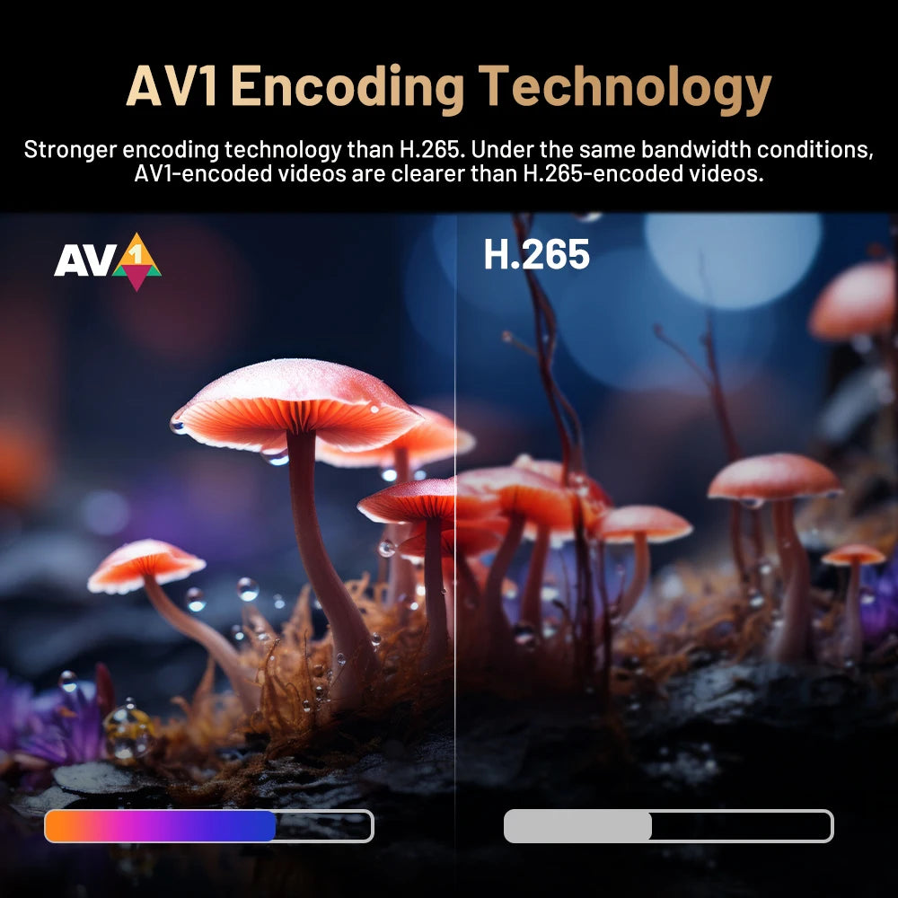 X5 Pro android box has AV1 decoding technology, compared with VP9 and H.264, AV1 has better decoding efficiency and can achieve the same picture level as a higher bit rate VP9 with a lower bit rate so that video users can watch much better quality and clearer video with the same bandwidth and traffic consumption.