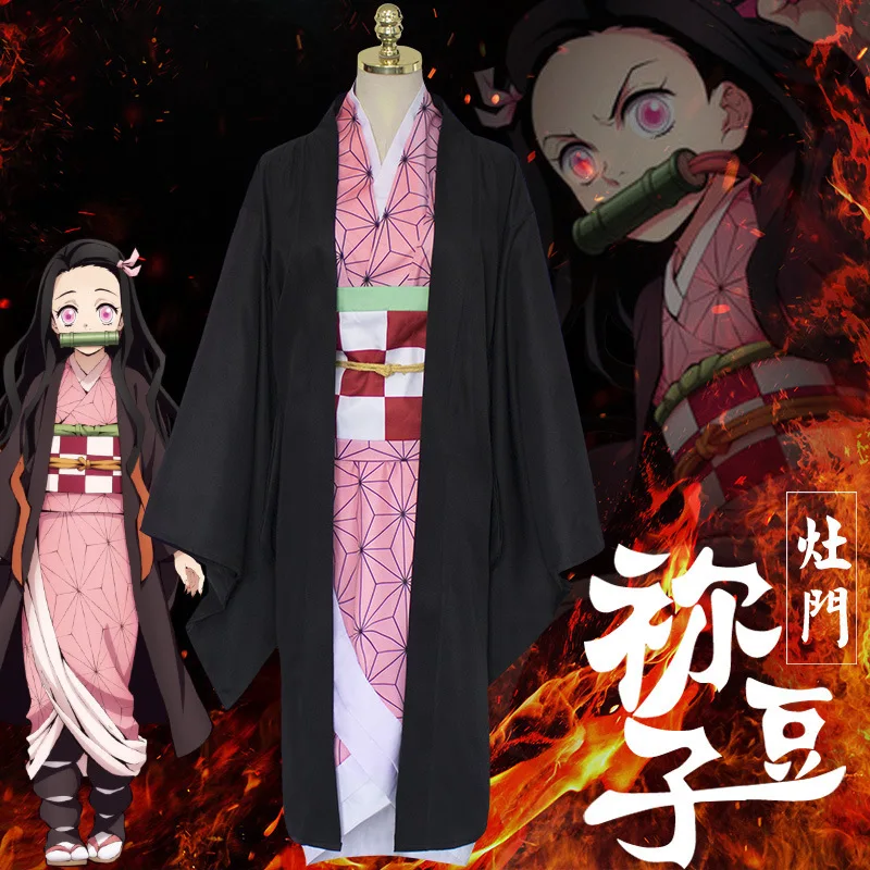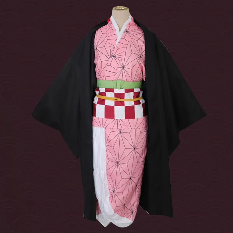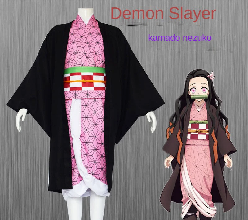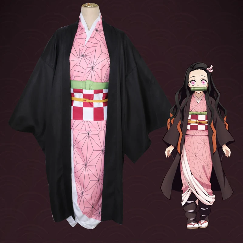 Anime Demon Slayer Nezuko Cosplay Costume Kimono Kimetsu No Yaiba Kamado Nezuko Costume Wig Womens Girls Kimono Uniform Clothes