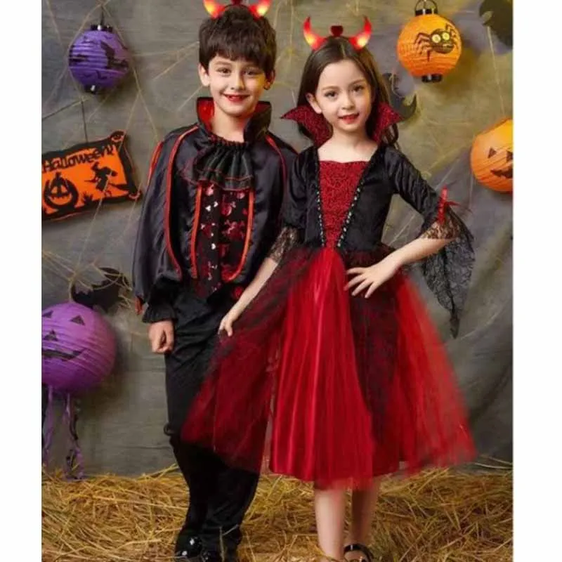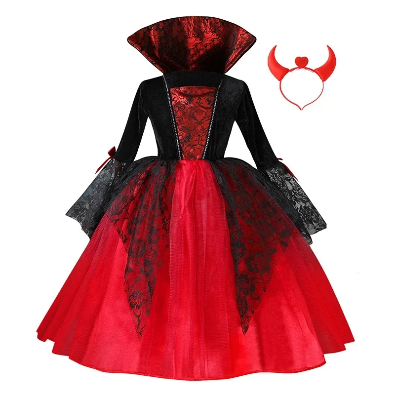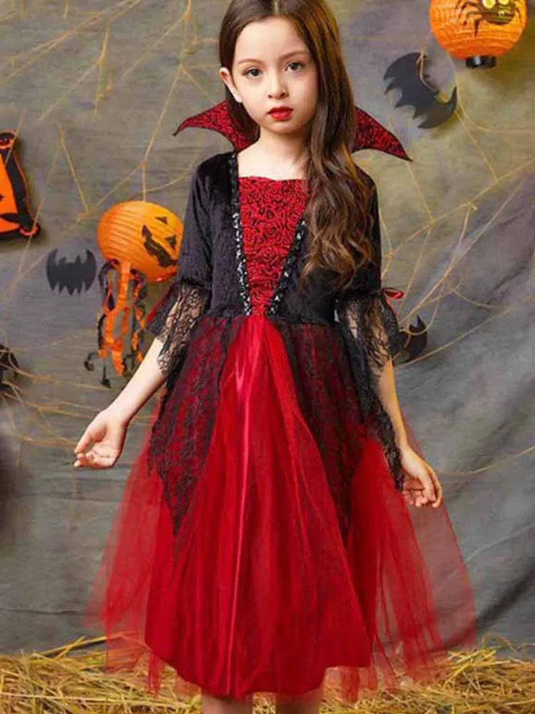 Halloween Girls Ghost Bride Vampire Dress Kids Costume Children Birthday Party Dress Mesh Witch Fancy Dress Gothic Witch Costume