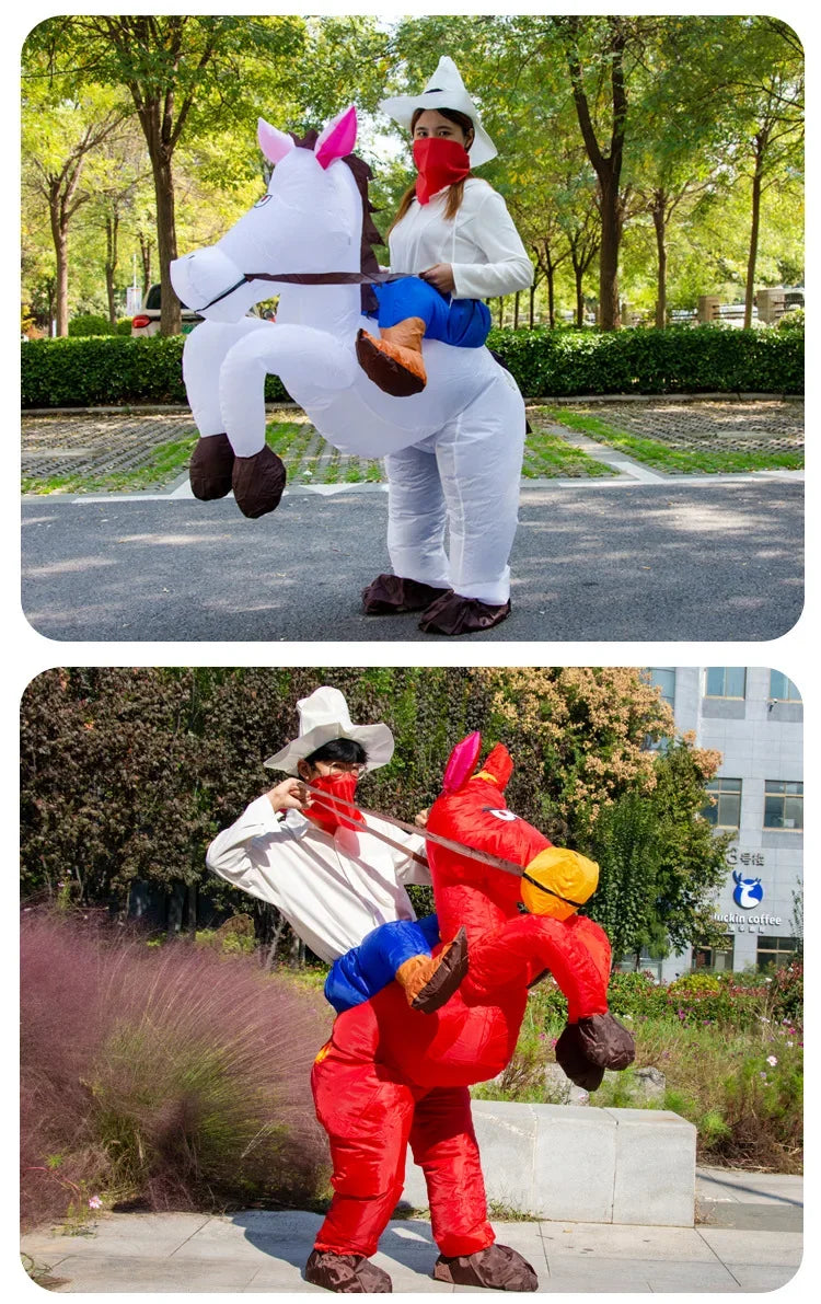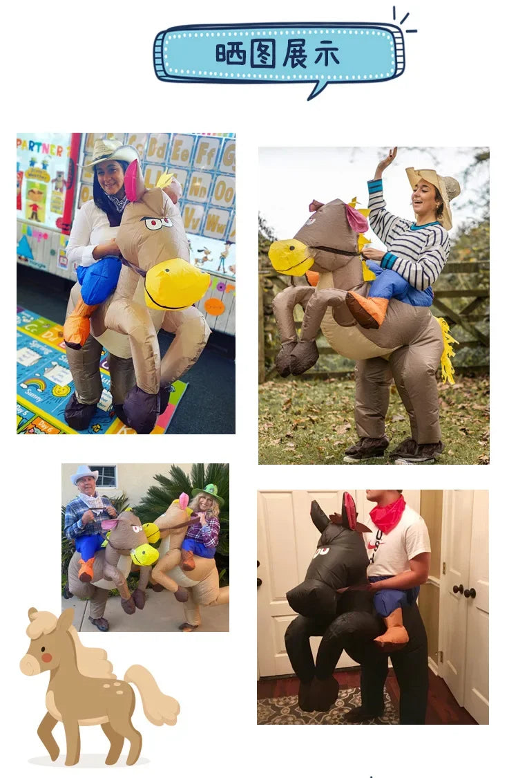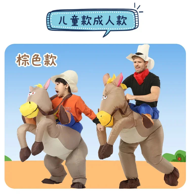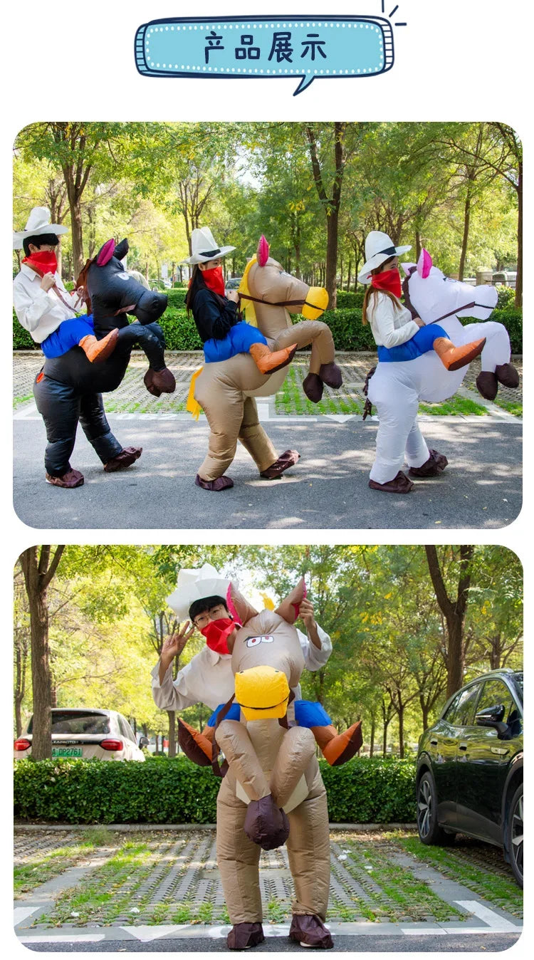 Get ready for your next cosplay event with our top-quality Cosplay Costumes! Our latest addition is the Adult Children Western Cowboy Riding Inflatable Costume, featuring a Little Grey Horse Bull Riding outfit that will add a unique spin to your Halloween show or any other special occasion.