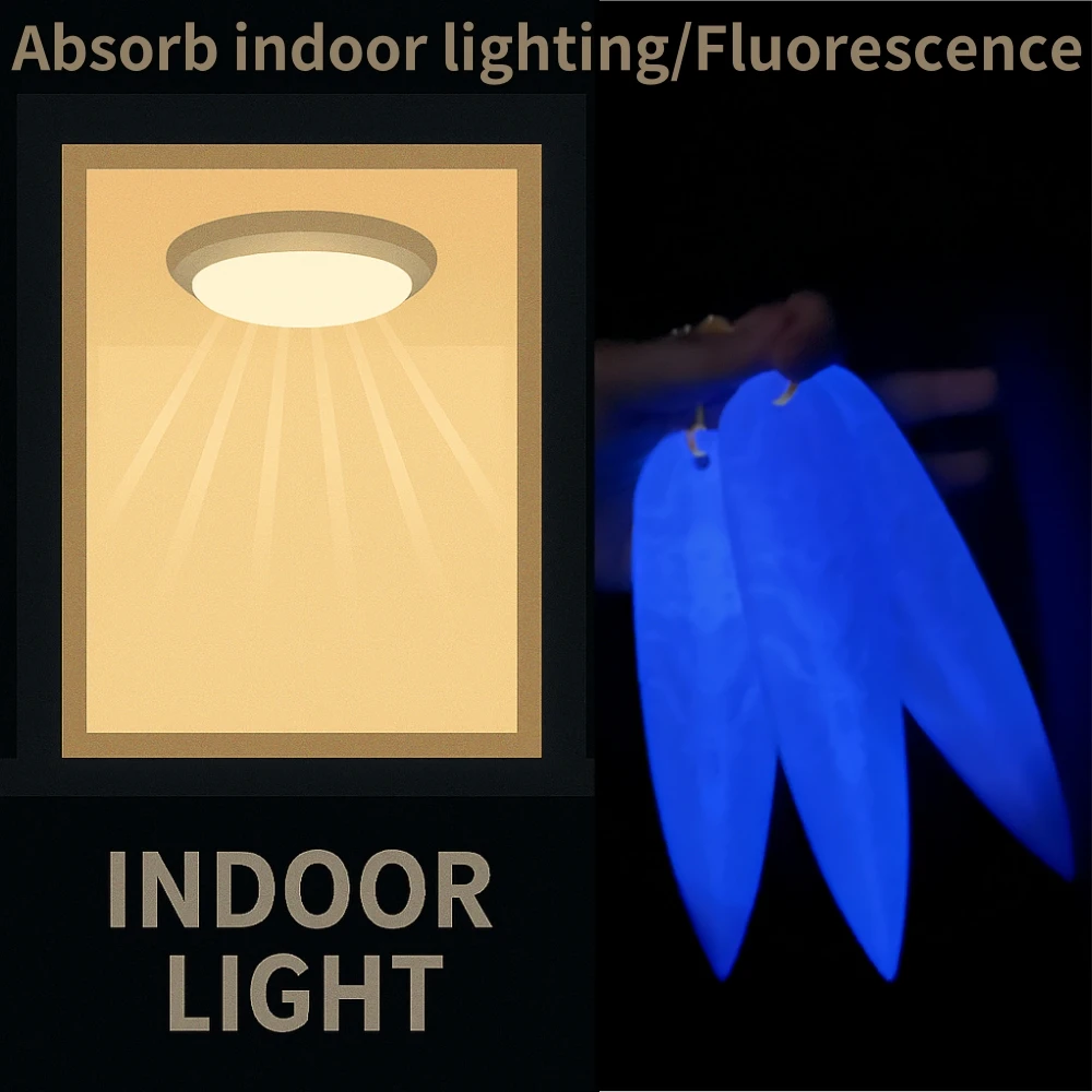 The indoor lighting is exposed for 5-10 minutes, absorbing the light and automatically storing energy. The purple shuttle is purple during the day and fluorescent in the dark indoors at night. If you have any questions, please feel free to ask the store customer service at any time. Thank you.