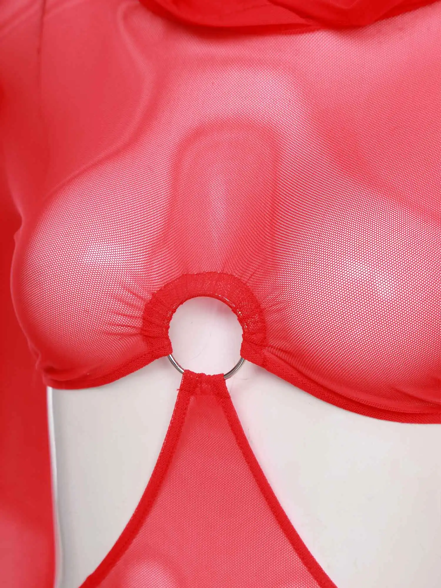 Hollow out design with a metal o-ring look stylish and unique, sheer fabric and high slit make your body visible and show your spicy body figure.