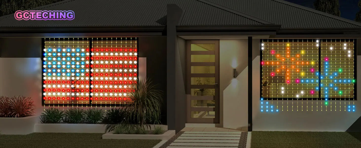 【100+ Scene Lights】 You can find unique lights on outdoor curtain lights in every festival, suitable for shops, supermarkets, nightclubs and bars to attract customers' attention during Summer Halloween, Back to School, Labor Day, Thanksgiving, Black Friday, Cyber Monday, Year End Sales, Christmas, Hanukkah, Boxing Day, New Year and Independence Day
