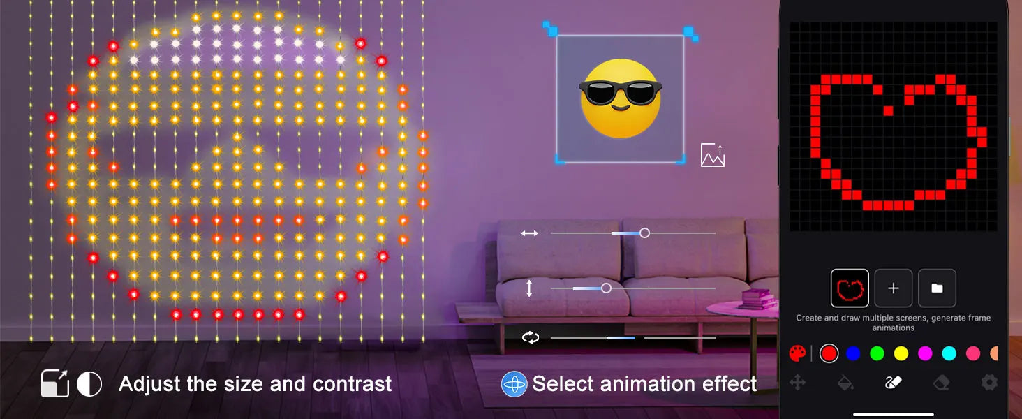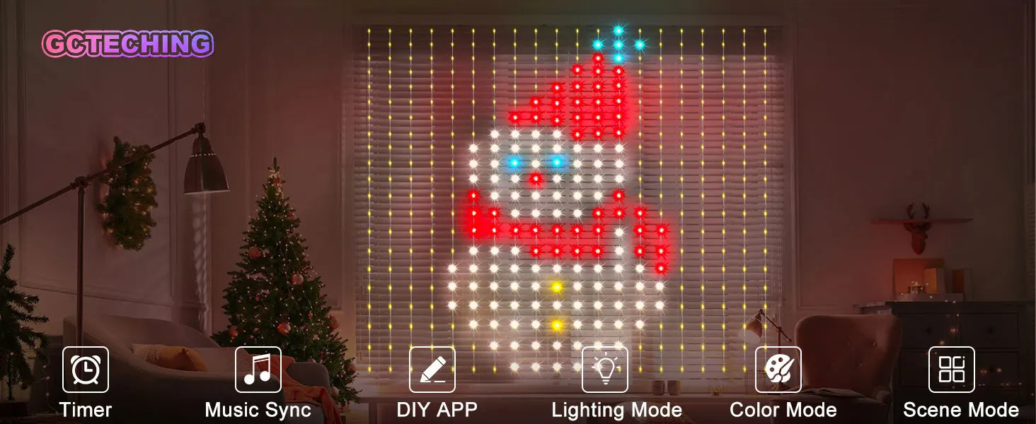 LED Smart Curtain light with Remote &APP Control:Operate the led curtain lights addressable effortlessly with the included dedicated APP or remote control, the app is easy to pair and use and it is fun to try the different modes and draw your own unique patterns or slogans