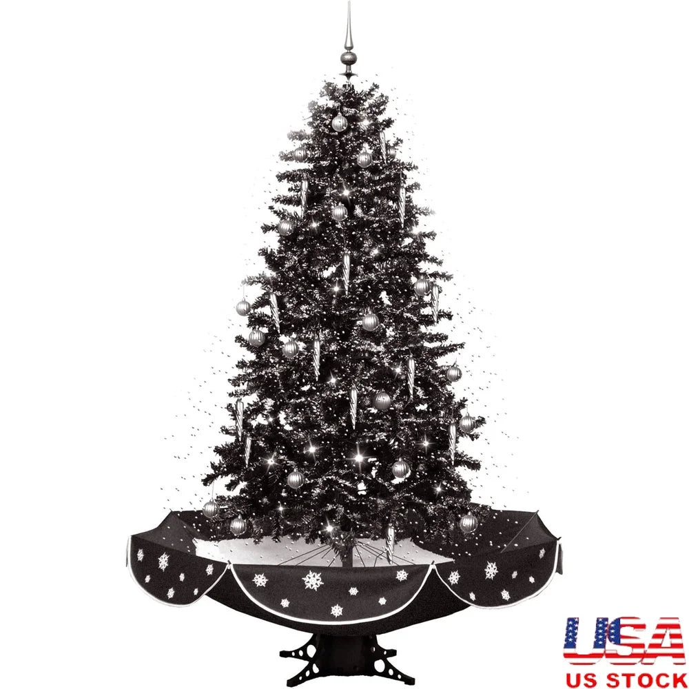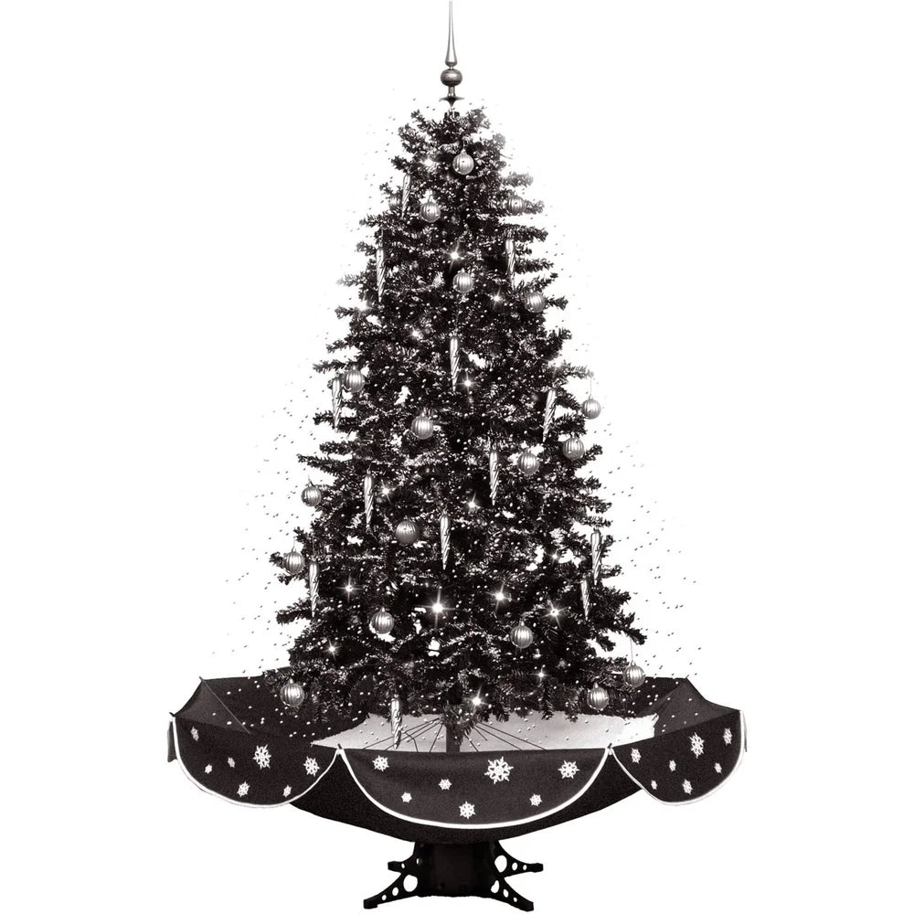 Black pine tree with 559 branches and black umbrella base with snowflake design