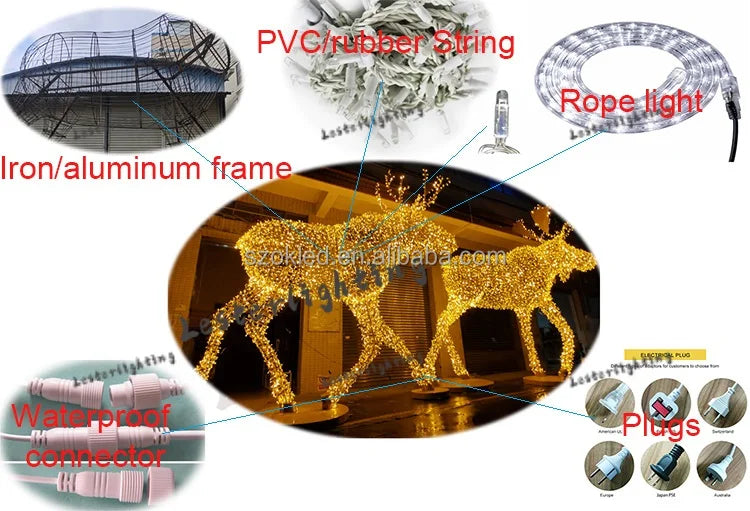 Material: PVC, Metal Frame+rope light+madder+string light