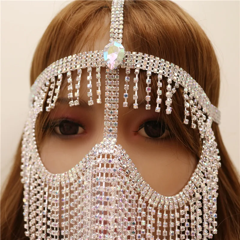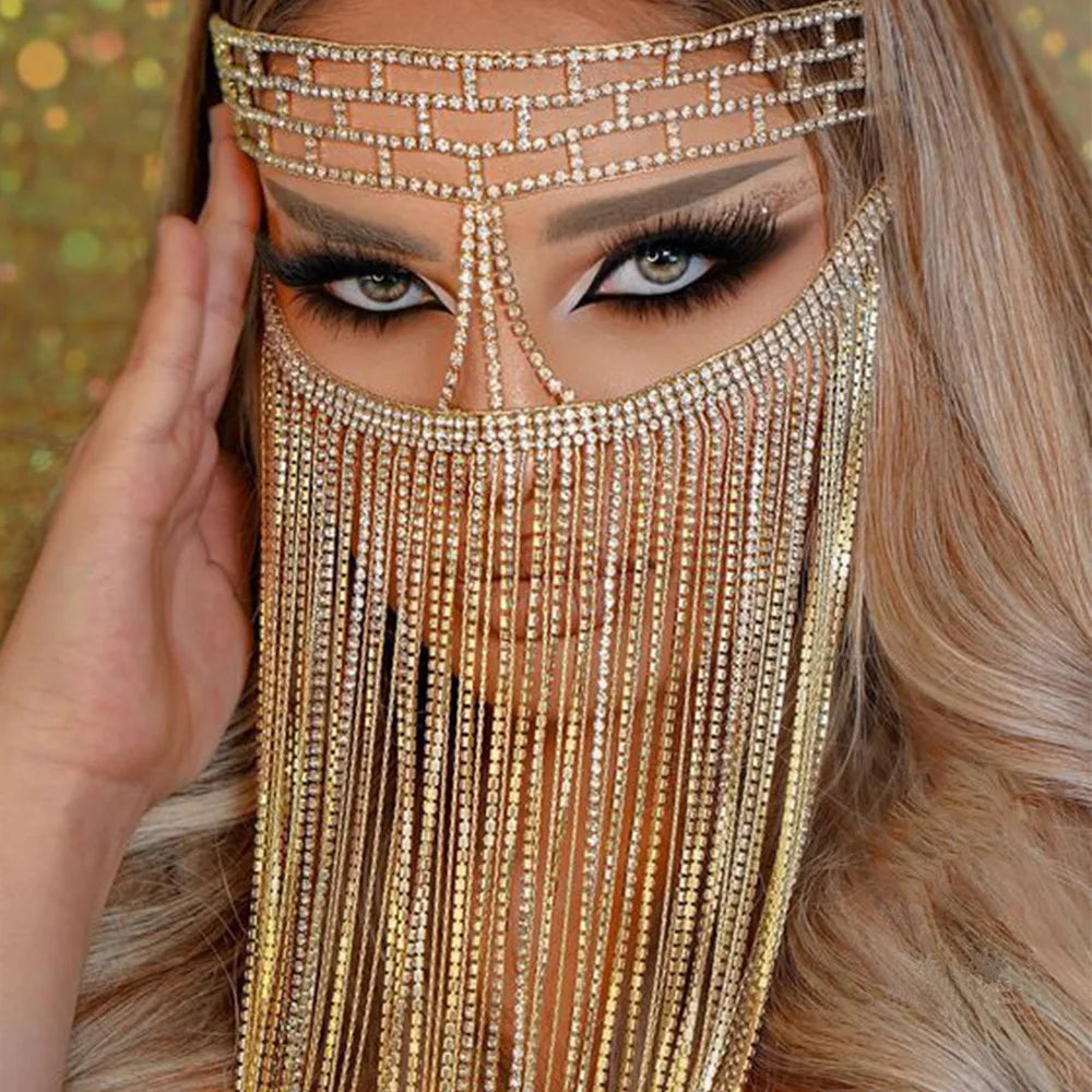 Rhinestone Tassel Masquerade Face Jewelry For Women