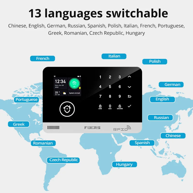 * 13 languages can be switched at any time: Chinese, English, German, Russian, Spanish, Polish, Italian, French, Portuguese, Greek, Romanian, Czech Republic, Hungary.
