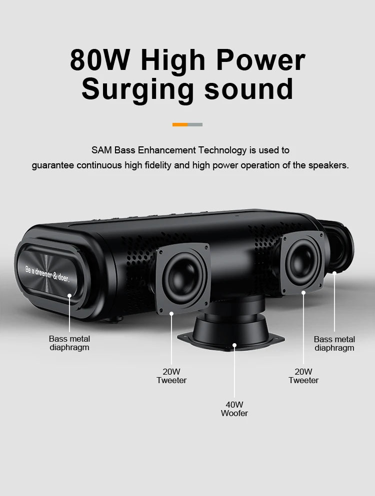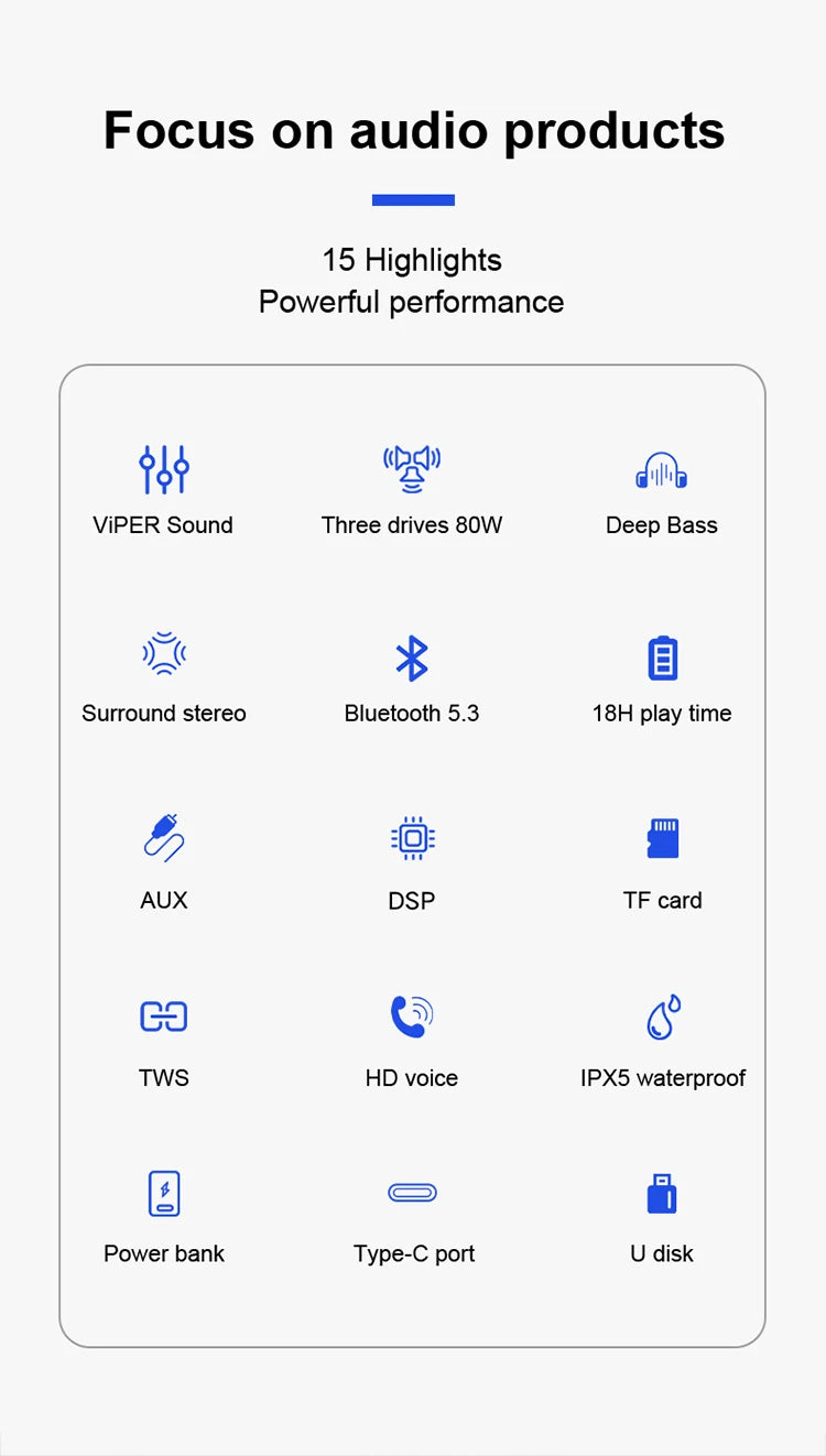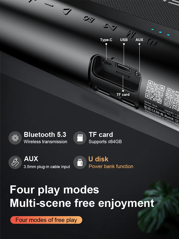 Support: Charging smartphone for emergency,TWS, EQ, BT, TF card, Aux Play