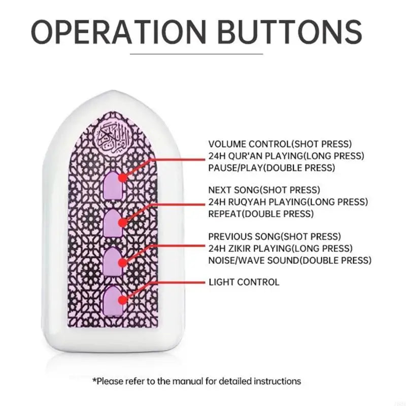 Multi-function: Quran Learning/Loud speaker/Night light/24 Hour loop