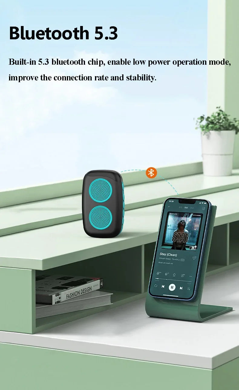 Built-in 5.3 Bluetooth chip, low power operation mode, improve the connection rate and stability.