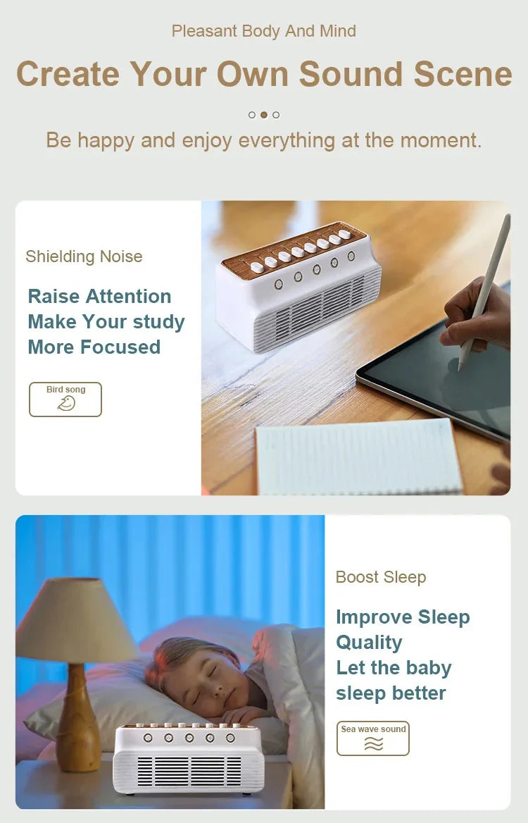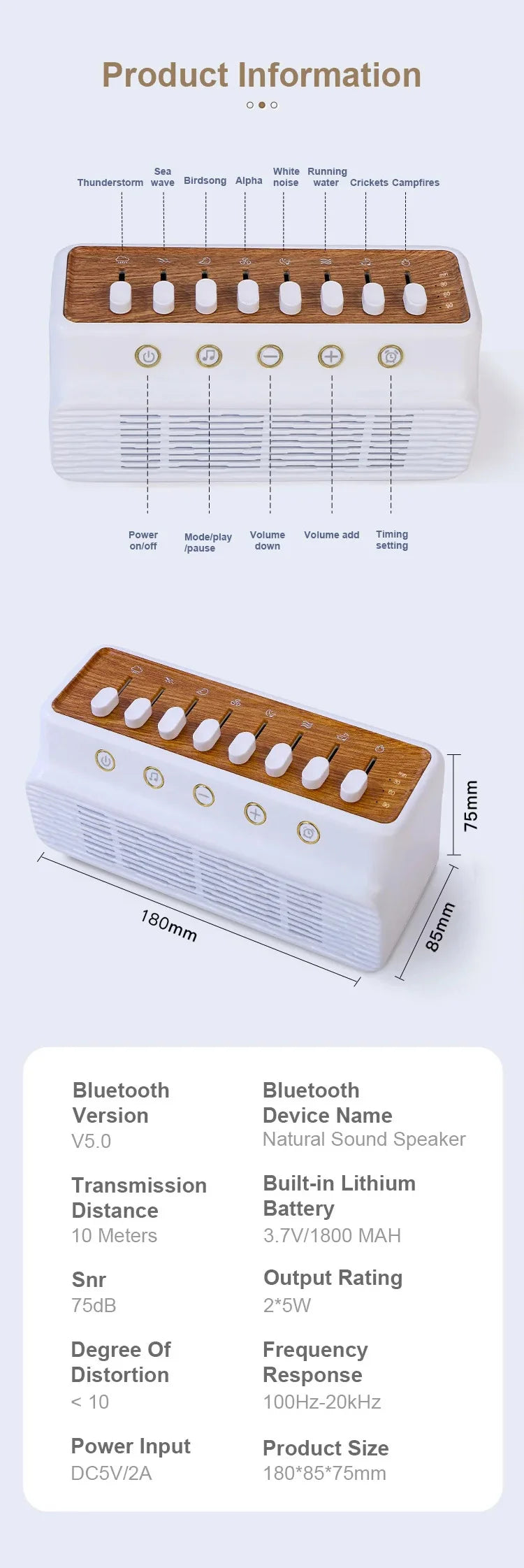 Portable Wireless Bluetooth Speaker White Noise Machine Free Combination of 8 Group Nature Sound Relaxing Sleep Audio Device