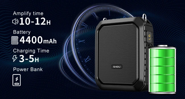 Powered by a robust 4400mAh rechargeable battery, this voice amplifier provides long-lasting power for extended use. Enjoy hands-free convenience with the included adjustable waist or neck band. Whether you're teaching, leading a tour, or engaging in outdoor activities, you can carry the microphone effortlessly. Plus, enjoy music and recording anytime, anywhere.