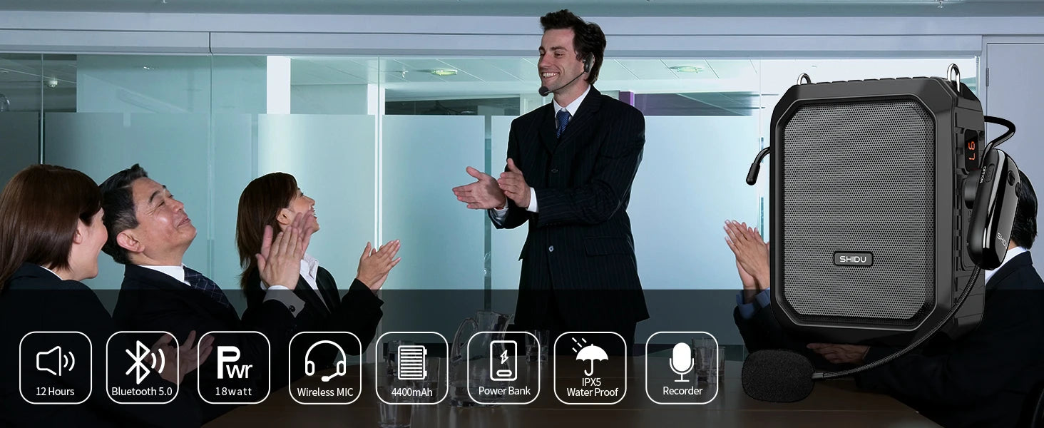 The SHIDU voice amplifier features an IPX5 waterproof rating, protecting it from gentle water sprays and splashes. The smooth, anti-fingerprint fabric and rubber exterior guard against scratches and impacts, making it ultra-portable and ideal for travel, hiking, beach trips, poolside use, and even in the bathroom.