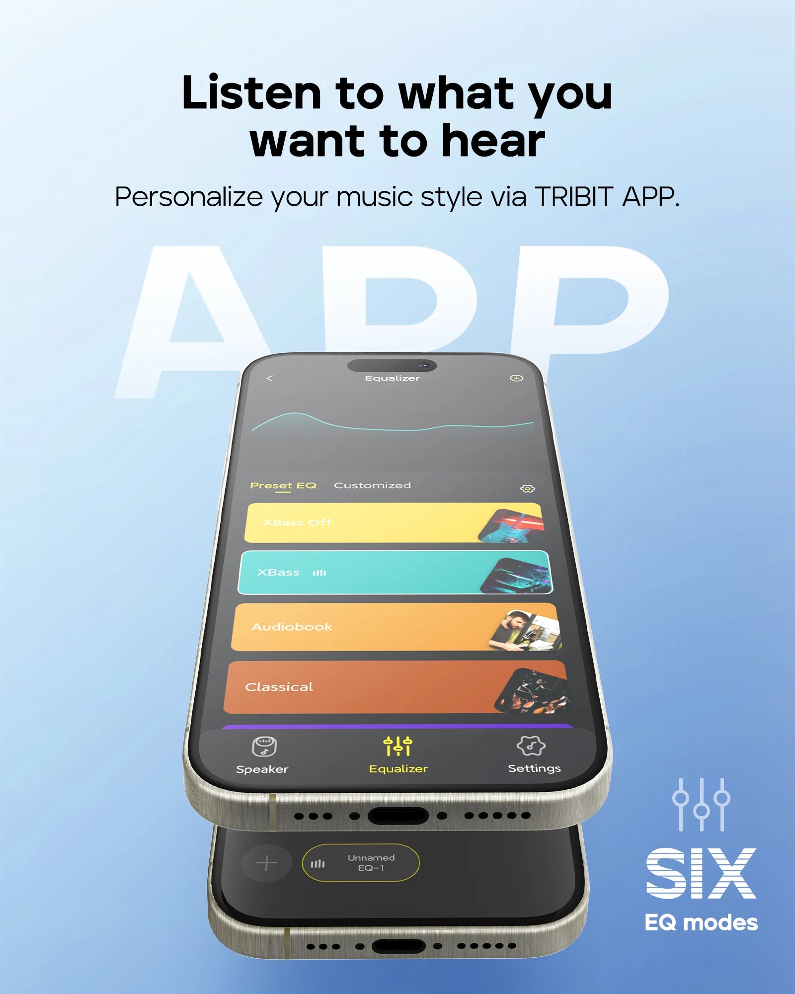 Customize your exclusive EQ by TRIBIT App and experience the charm of music.