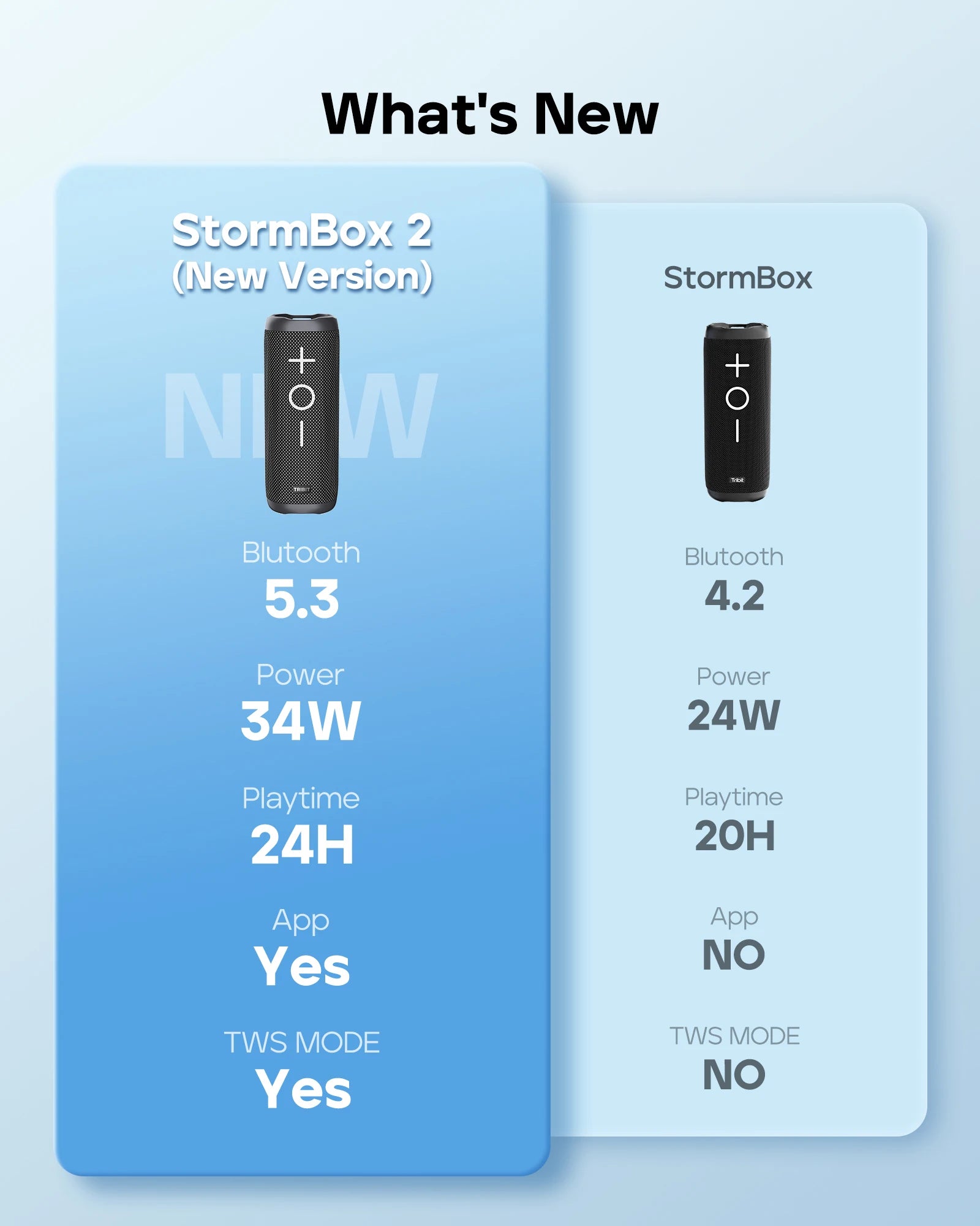 ● 【Party-Ready TWS Mode】Take your parties to the next level with our linkable Bluetooth speakers. Pair two StormBox 2 speakers for a rich, immersive sound experience, perfect for indoor and outdoor gatherings, enhanced by XBass technology.