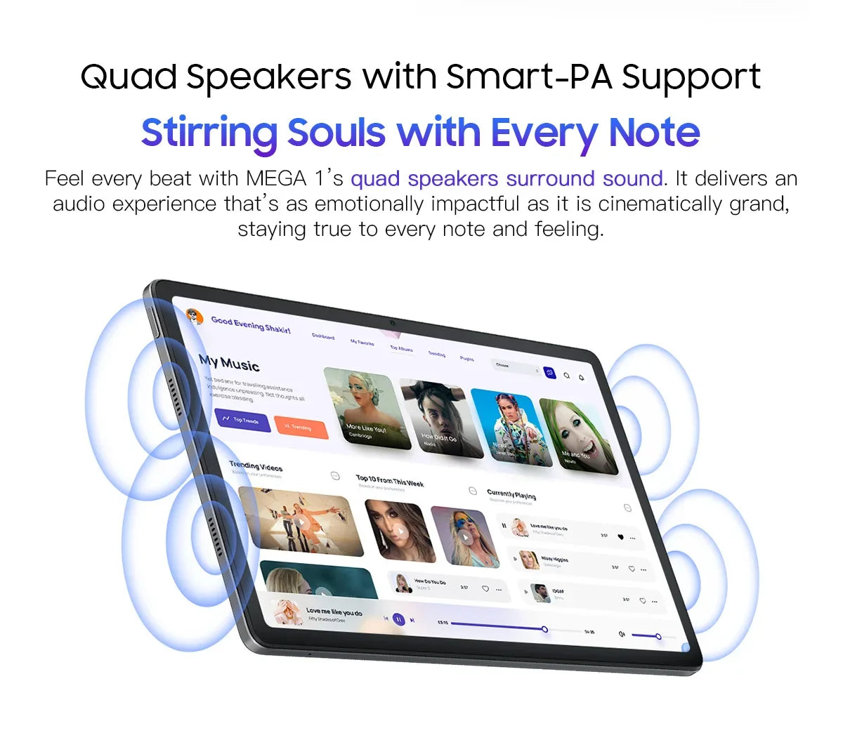 Reimagining your streaming experience with 1080P Widevine L1 support, MEGA 1 delivers mesmerizing visuals on Netflix, HBO, Amazon Prime, Disney+, and YouTube. With its quad-speaker setup, you're in for an enthralling audiovisual treat.