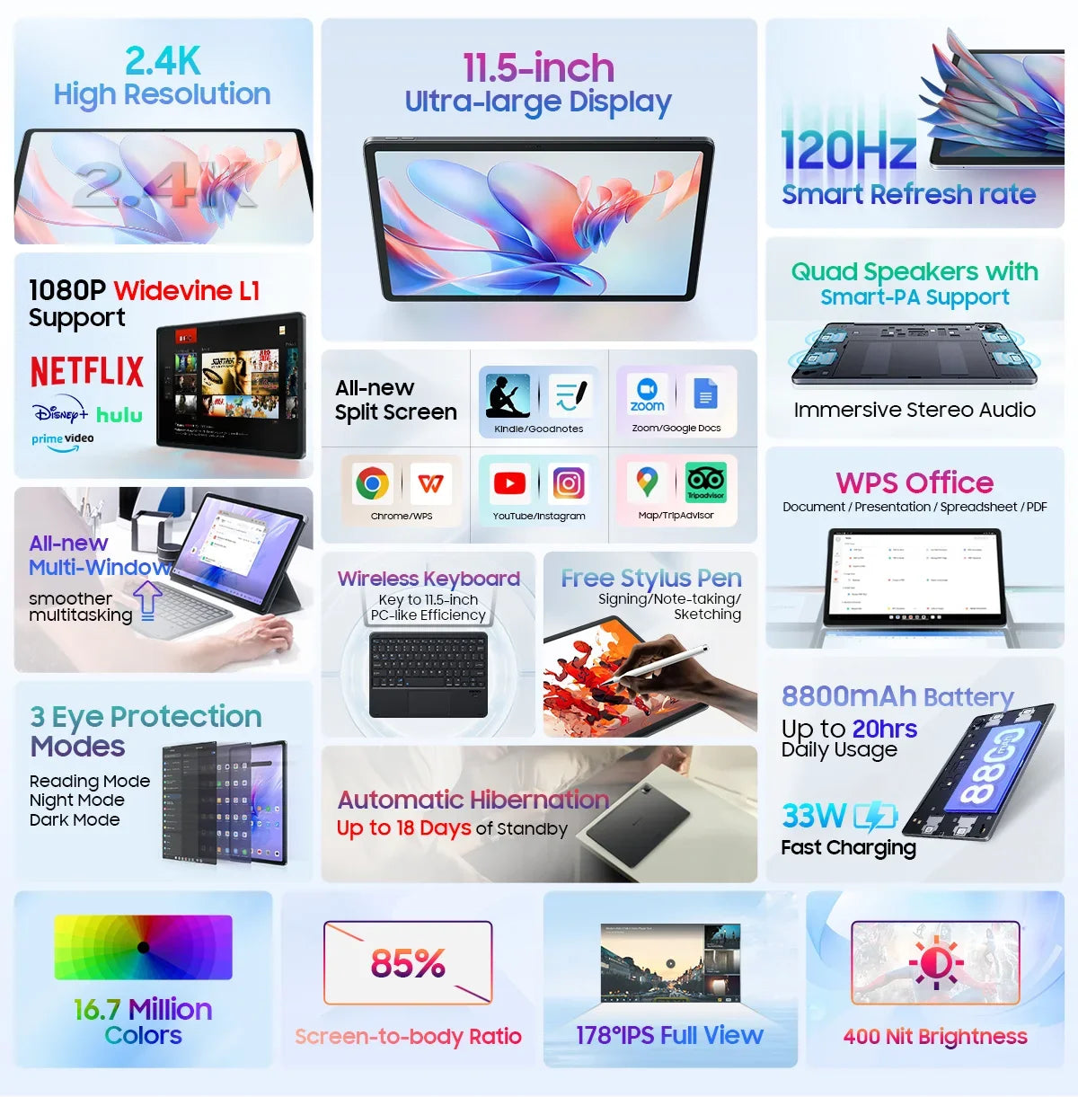 11.5-inch Ultra-large 2.4K Display|120Hz Smart Refresh rate