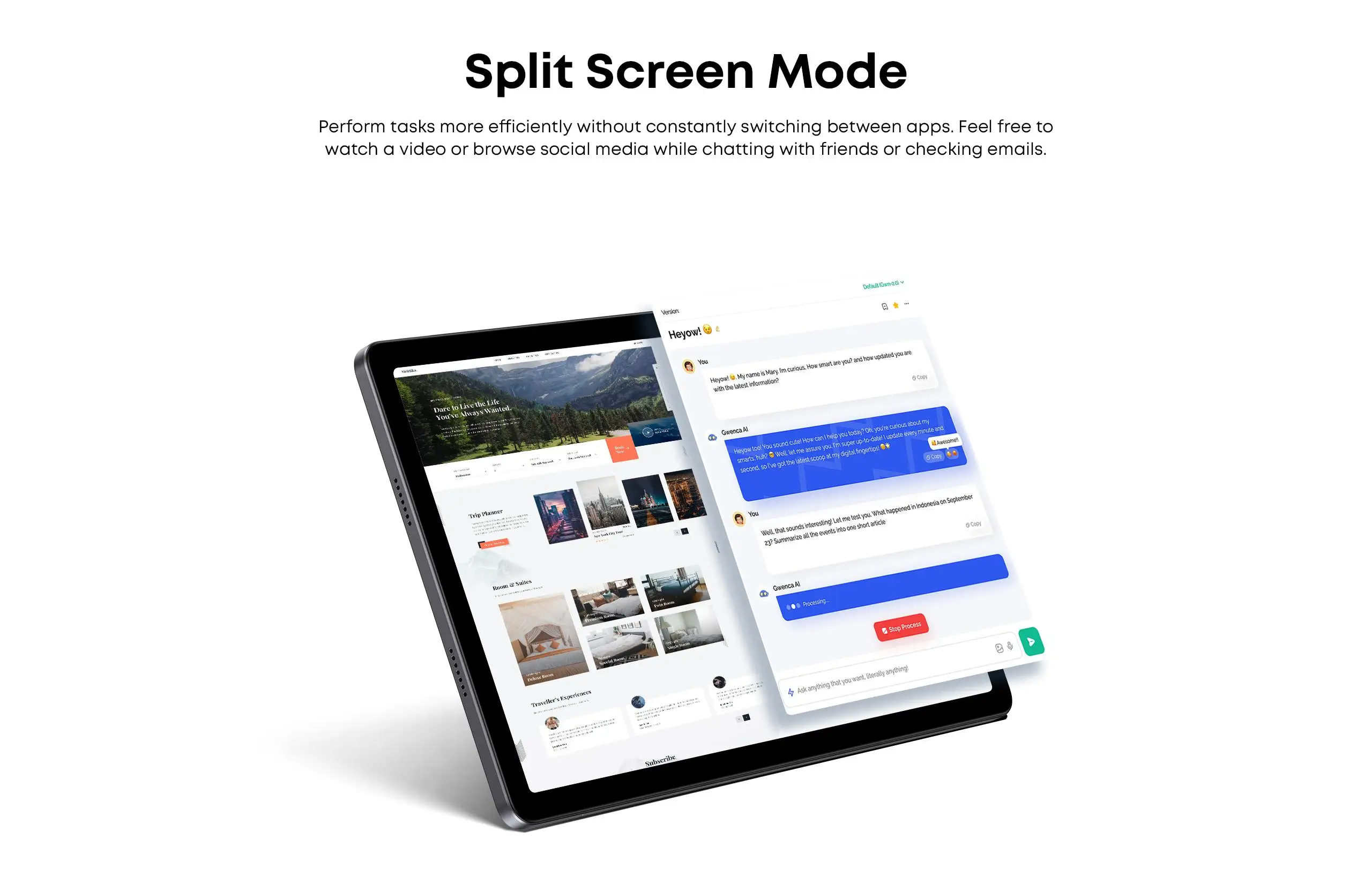 Perform tasks more efficiently without constantly switching between apps, Feel free towatch a video or browse social media while chatting with friends or checking emails.